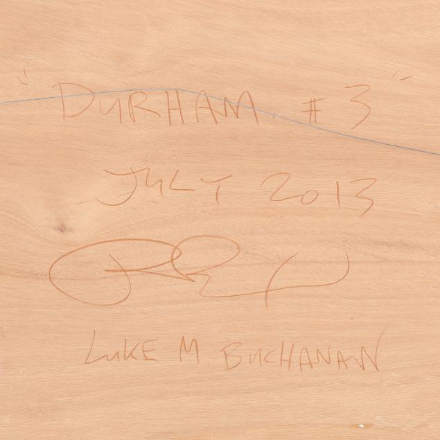Private Collection, Raleigh, North Carolina Luke Buchanan is an artist and a designer who lives and works in Raleigh, NC. His work explores the relationships between the self and the spaces we occupy, both physical and spiritual. Buchanan has also painted several high profile murals in the Raleigh community, including the iconic "All are welcome, Raleigh, NC."