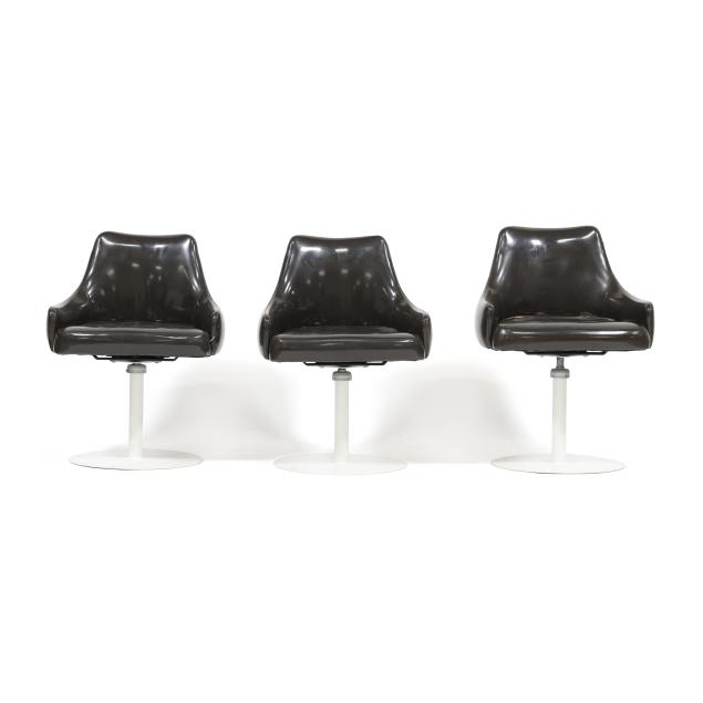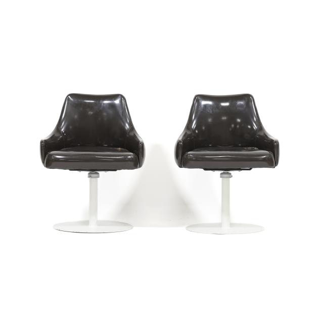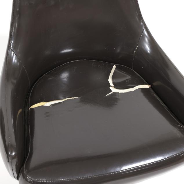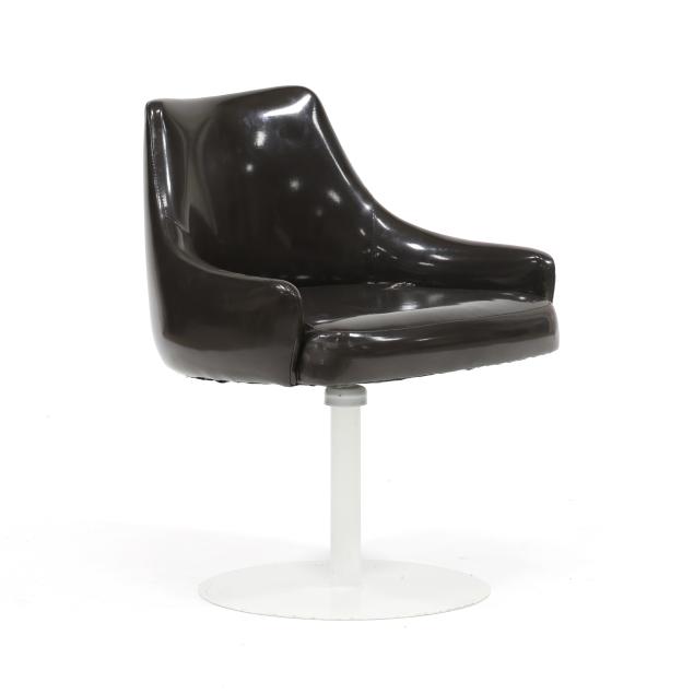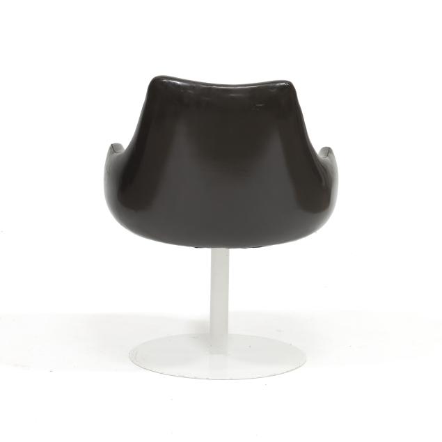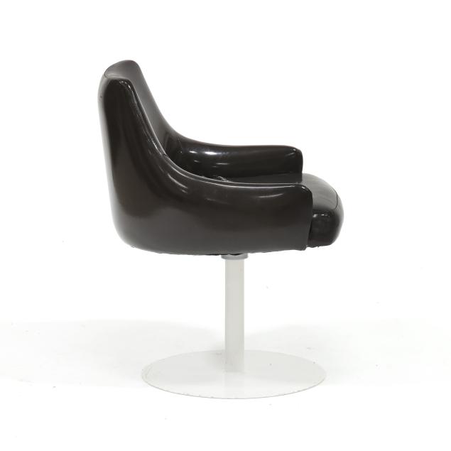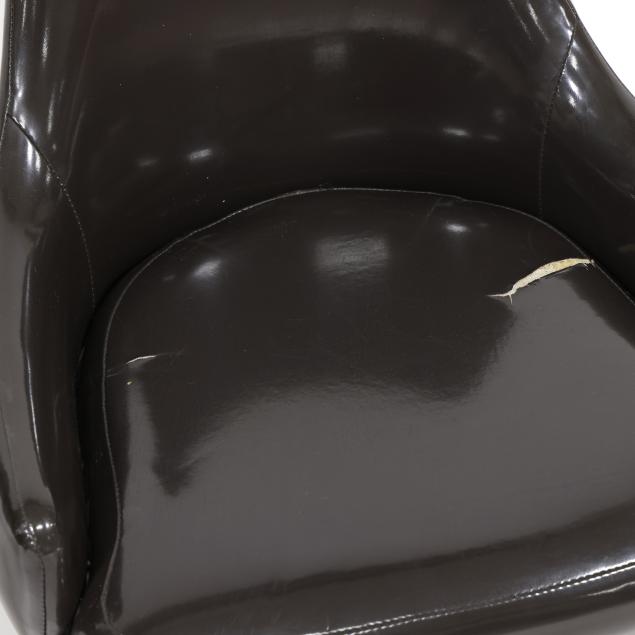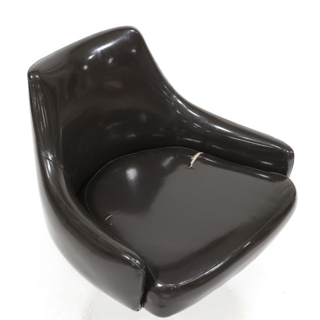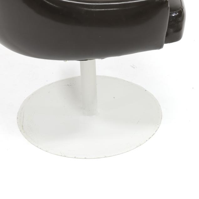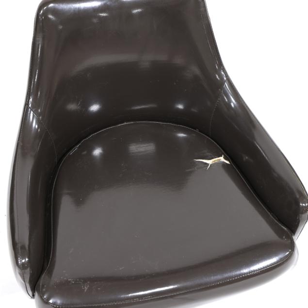 Thayer Coggin, circa 1960, dark brown vinyl upholstery, white powder coated steel base, unmarked.