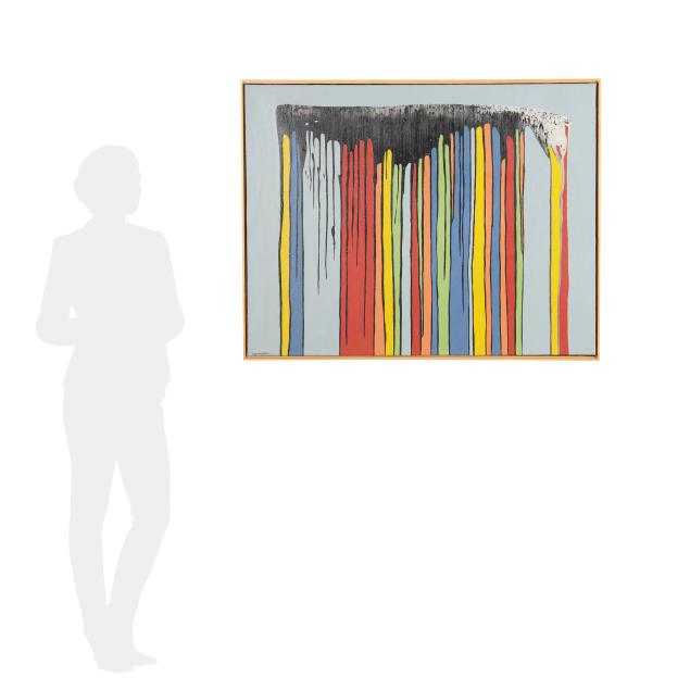 Oil and acrylic on canvas, 1968, signed at lower left, inscribed en verso, retaining gallery and exhibition labels, framed.