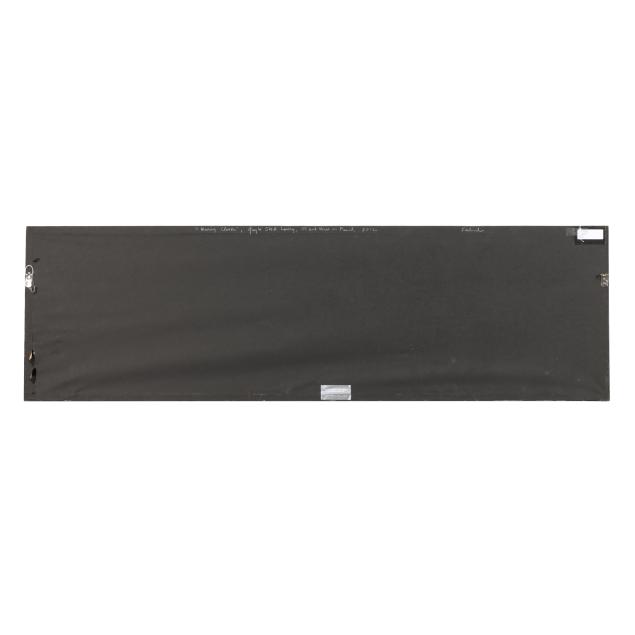 Oil and wax on panel, signed at lower right, retaining label to verso, not framed.