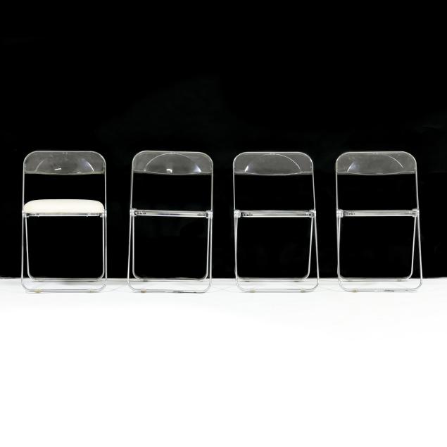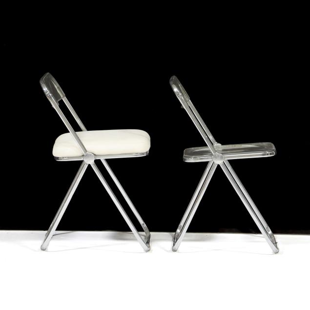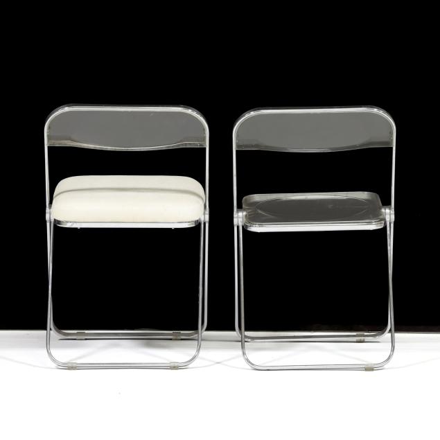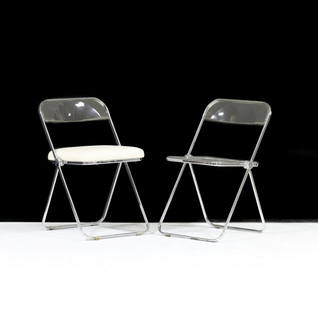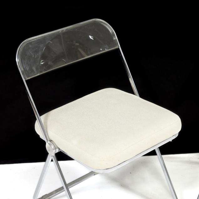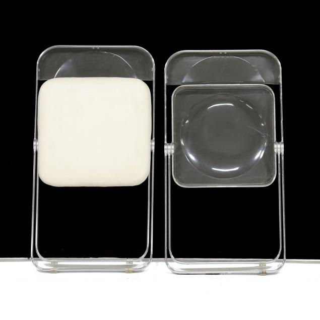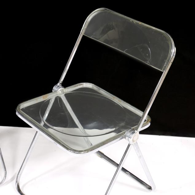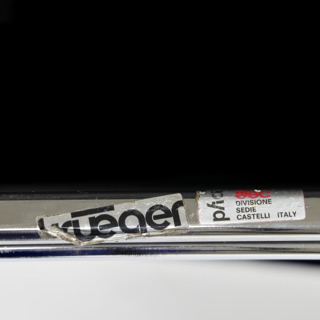 1967 for Castelli, chrome frame, clear plastic back and seat, one with later upholstery for Dot Coggin, labeled.