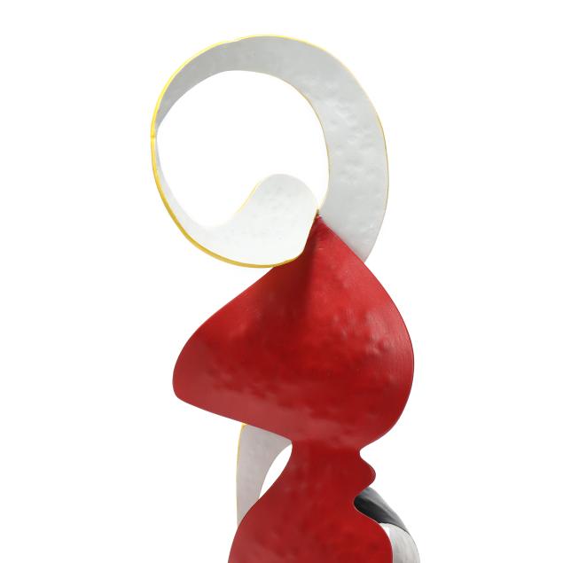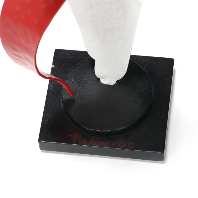 2000, painted and hammered metal sculpture in abstract form, signed "Tully 00" to base.