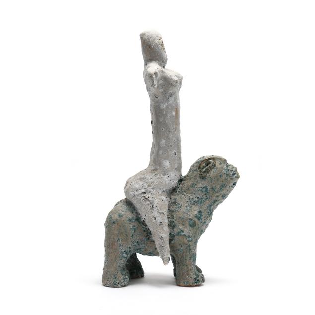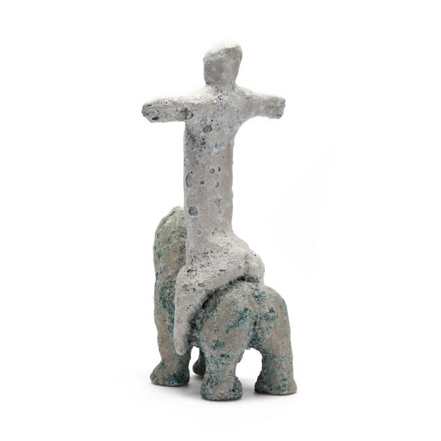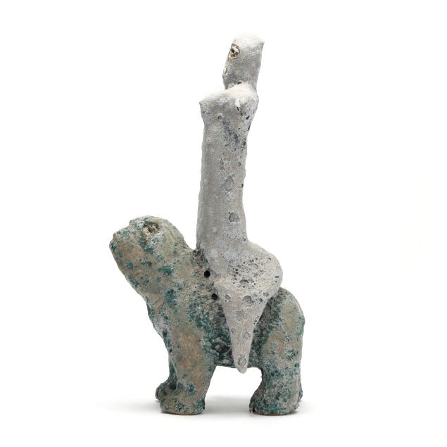 Private Collection, Raleigh, North Carolina Michigan-based sculptor Mark Chatterley has been creating his distinctive ceramic figural works for over 30 years, exploring "the archetypal images that go beyond culture and time that Jung wrote about." His clay sculptures are hand-built and bisque fired in his own 700 square foot kiln. Afterward, they receive Mark's crater glaze and fired once more to achieve their custom textural surface quality.