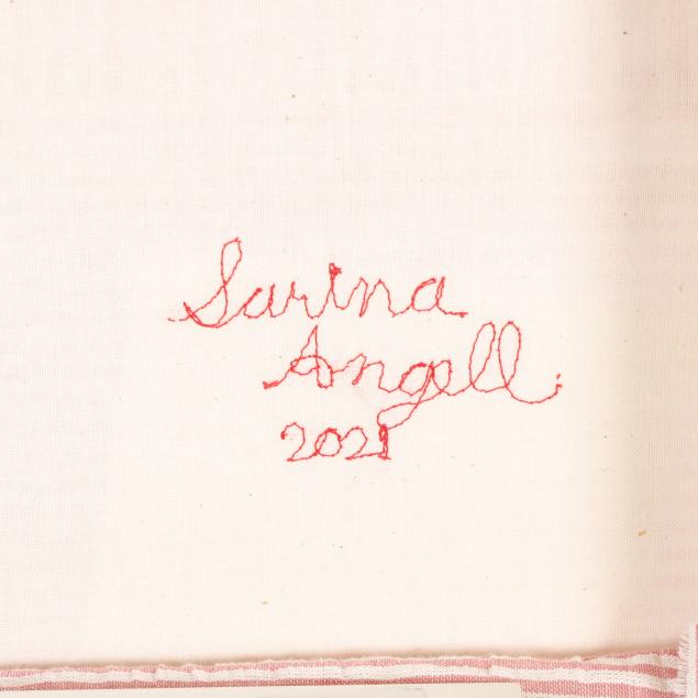 Appliquéd cotton seersucker, 2021, signed and inscribed to the verso, framed.