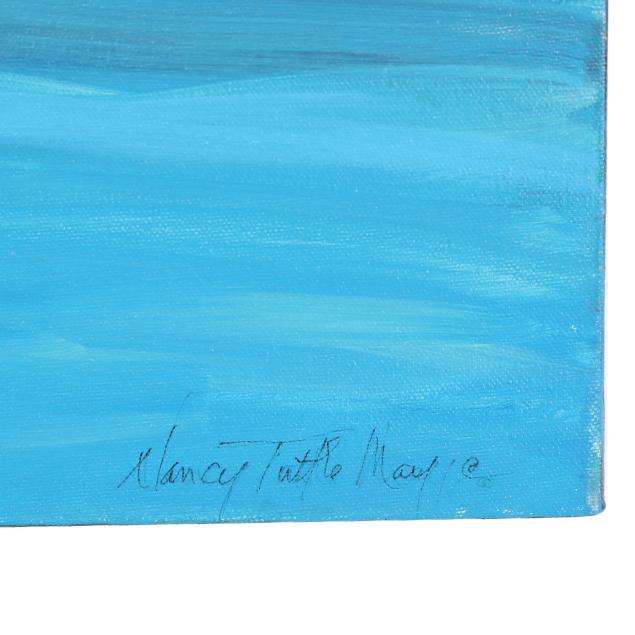 Nancy Tuttle May has been a fixture in the arts community of Durham, North Carolina for many years. She studied at Wake Forest University, and later at the Università per Strainieri di Perugia, Italy and Université Canadienne en France in Villefranche-sur-Mer, France, before returning to the United States to live and practice. Tuttle May's works - abstract and color field in style - are present in many collections, including the Duke University Medical Center, Durham; Weatherspoon Art Museum, Greensboro; SAS Institute, Cary; Nations Bank, United States and Australia; and The Breakers, Palm Beach.