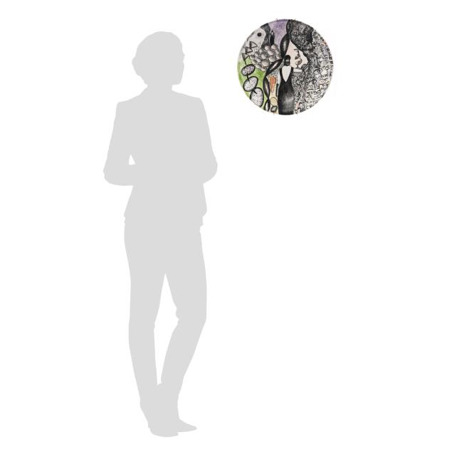 1998, hand-painted porcelain, signed and dated to the posterior, featuring an art deco lady within a surrealist tableau, mounted for wall display.