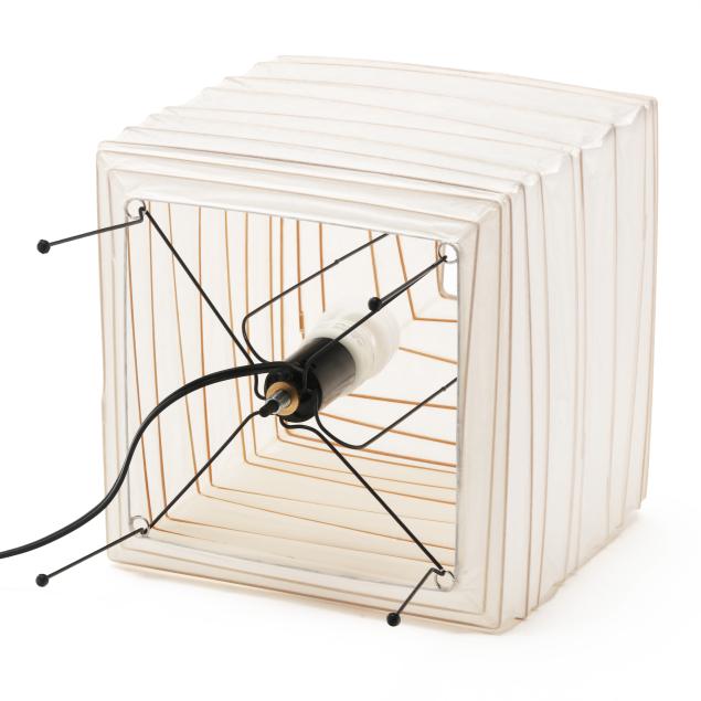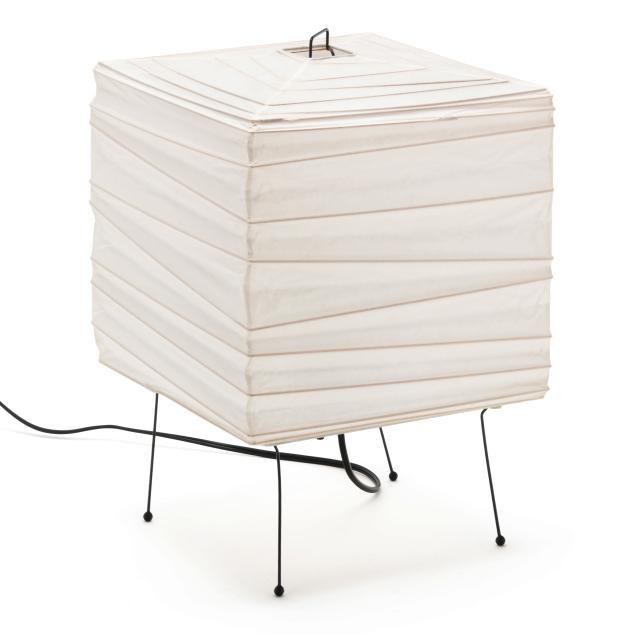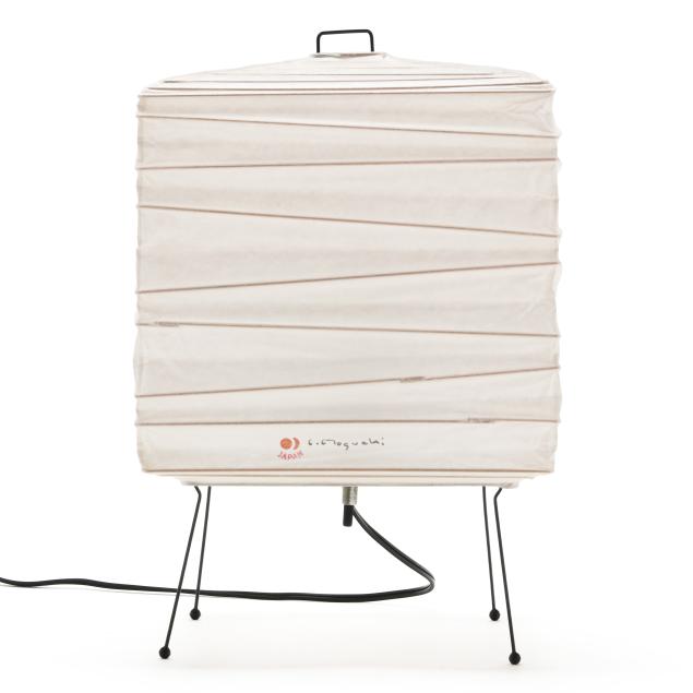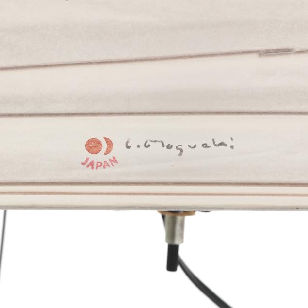 Japan, designed 1963, late-20th-century production, hand-made washi paper shade with bamboo ribbing supported by metal frame, marked to base of shade.