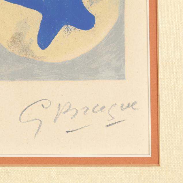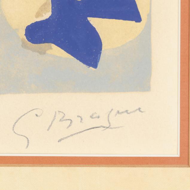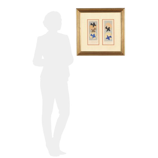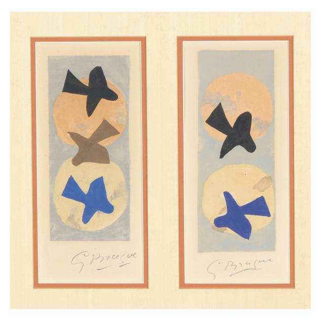 Each a lithograph in color, 1959, both signed in pencil, retain gallery labels to verso, matted and framed together. Maeght 1034 and 1035.