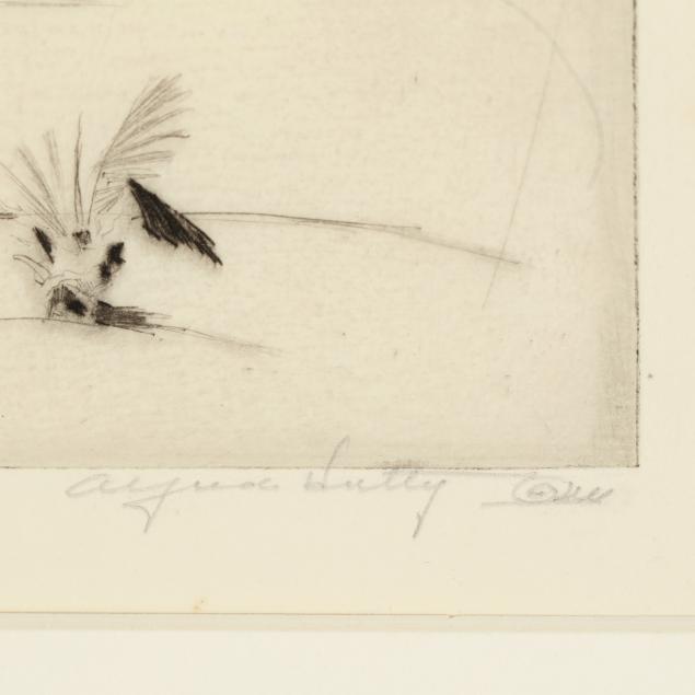 Drypoint, 1931, pencil signed and inscribed with Hutty's snail cypher at lower right, framed.
