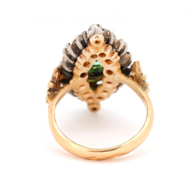 Vintage Gold, Silver, Emerald, and Diamond Ring