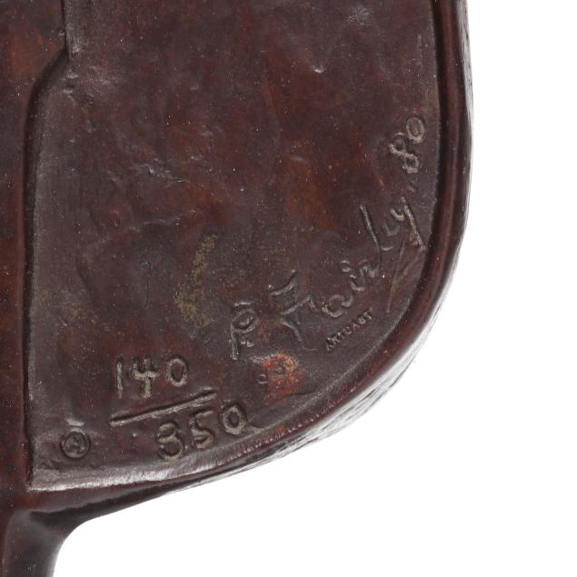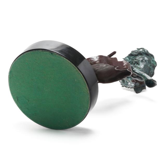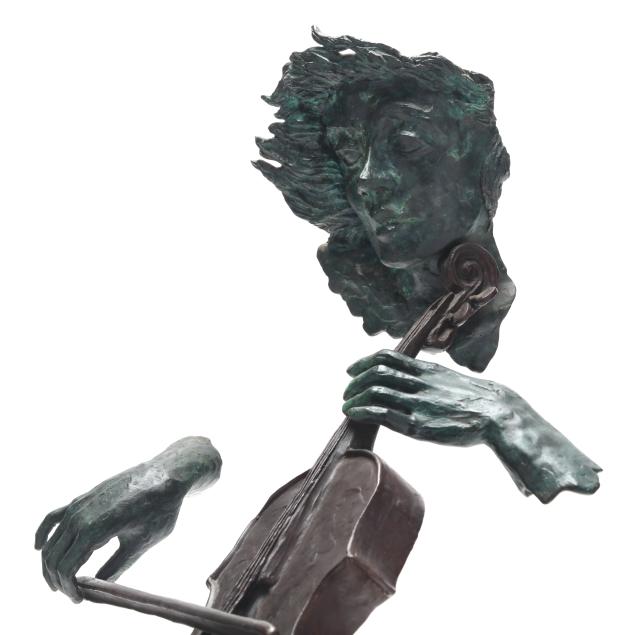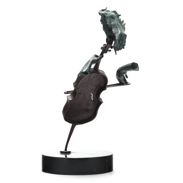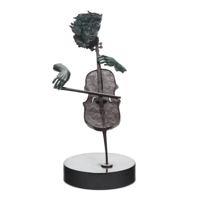 1980, patinated bronze, edition numbered 140/350, with signature and date to the lower cello edge, with Artcast foundry mark, mounted upon a round stone terrace.