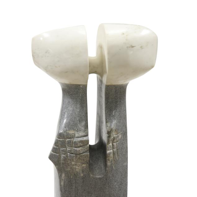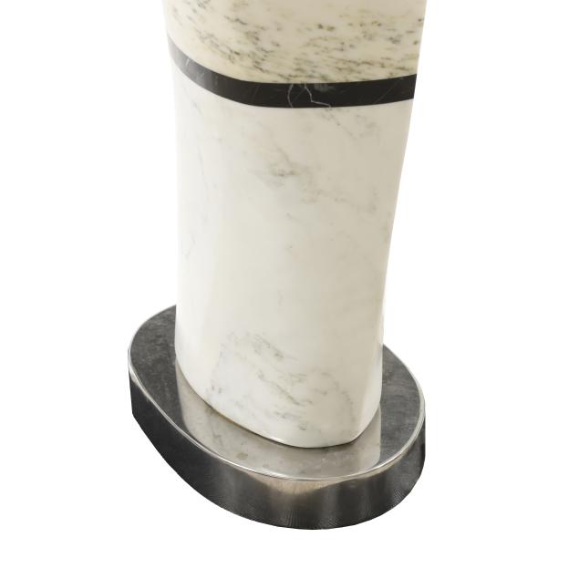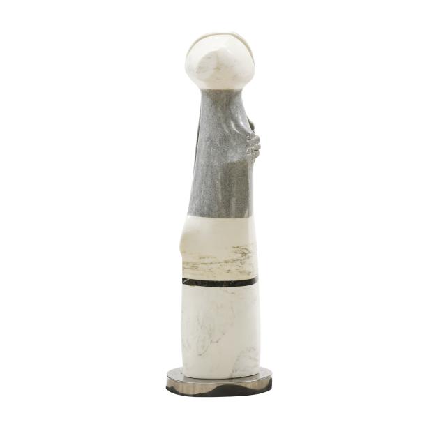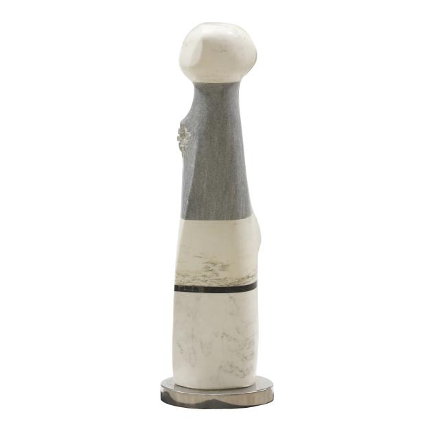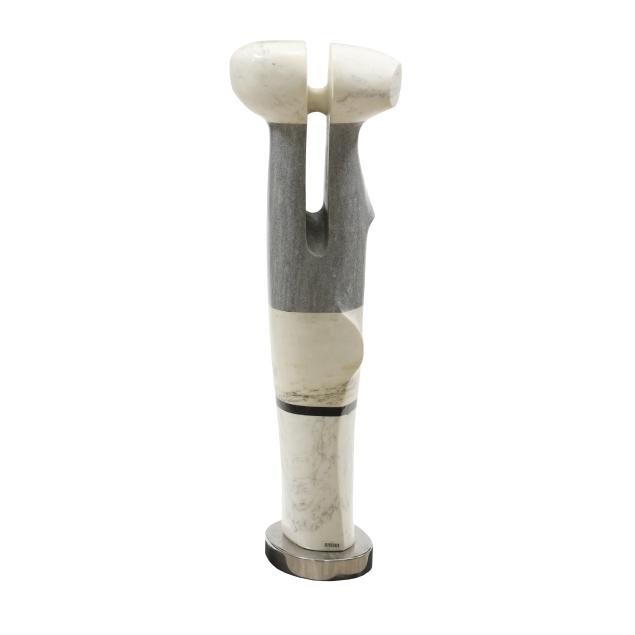 Carved and polished stone, unsigned, assembled and mounted on a chrome base.