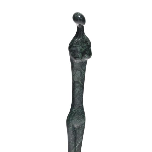 Carved and polished green marble, signed to the base.