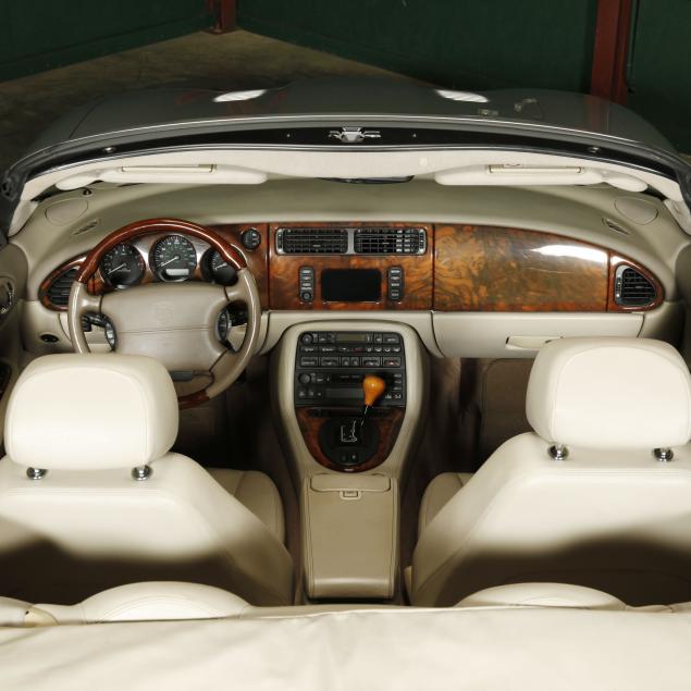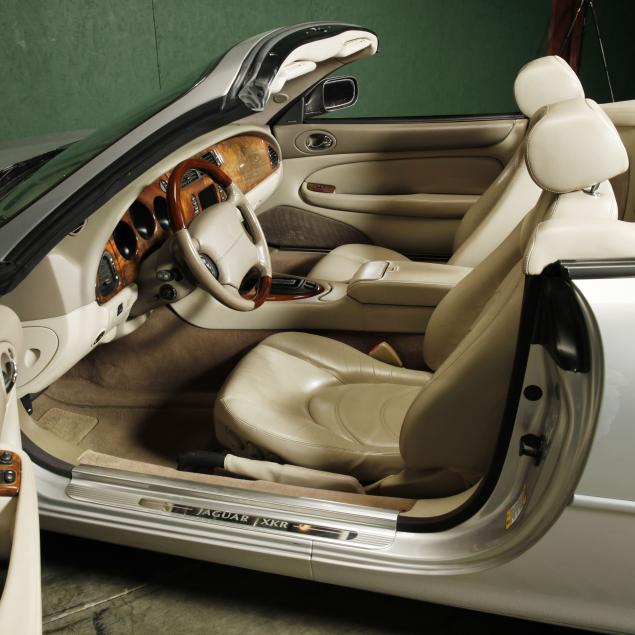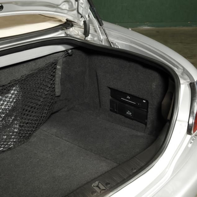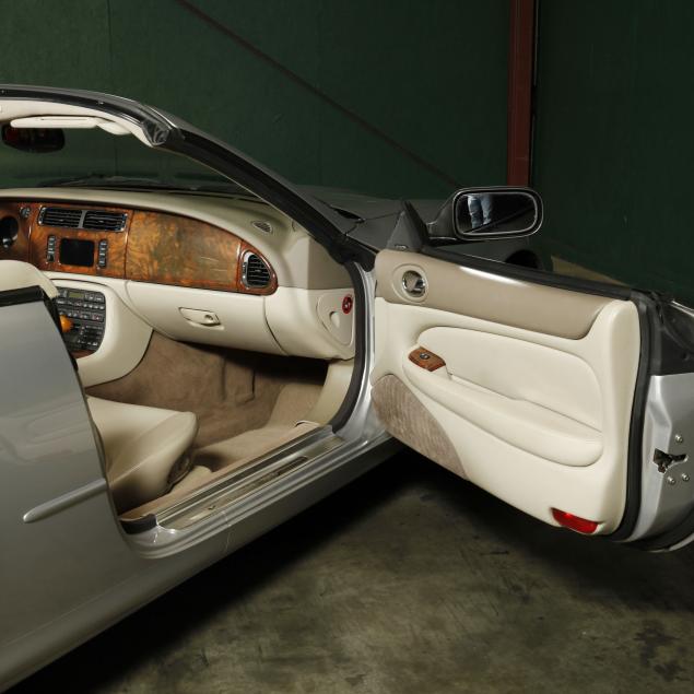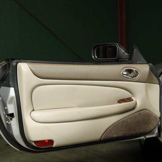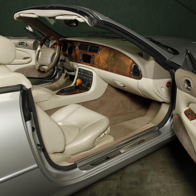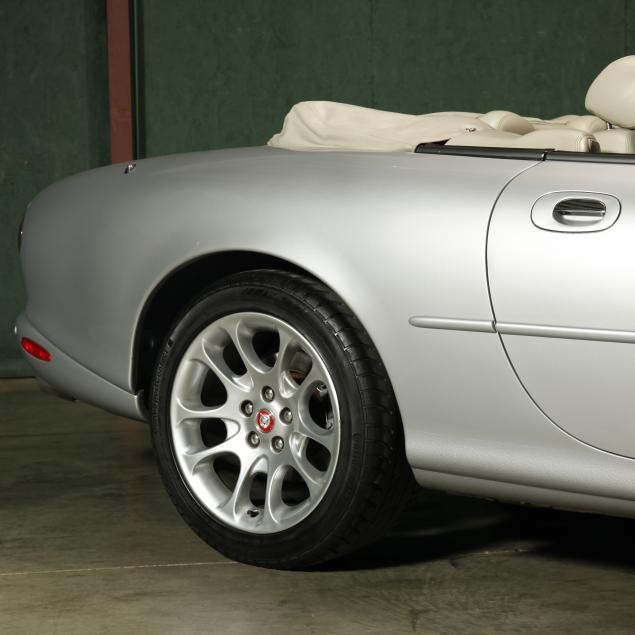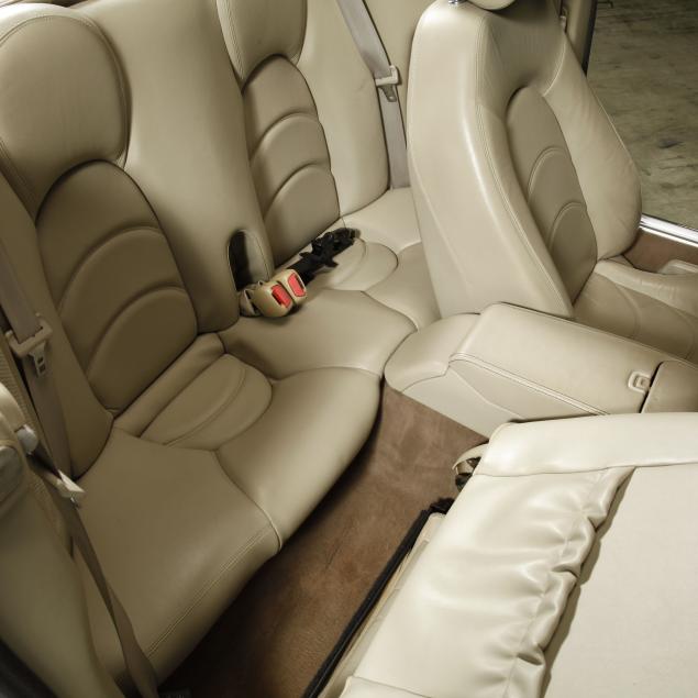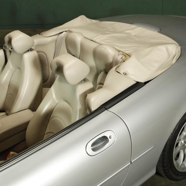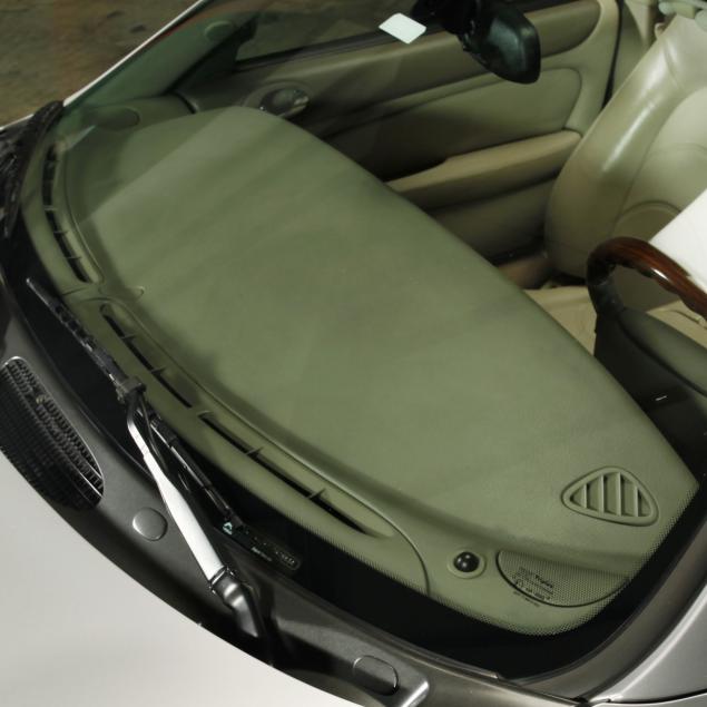 Exterior paint in Platinum Metallic (MDZ), and a premium leather interior in Oatmeal (AGD) with burl walnut trim and wool carpet. The power convertible top is in black fabric, and features a boot cover, as well as a quick tonneau for travel situations. Also with a premium car cover.