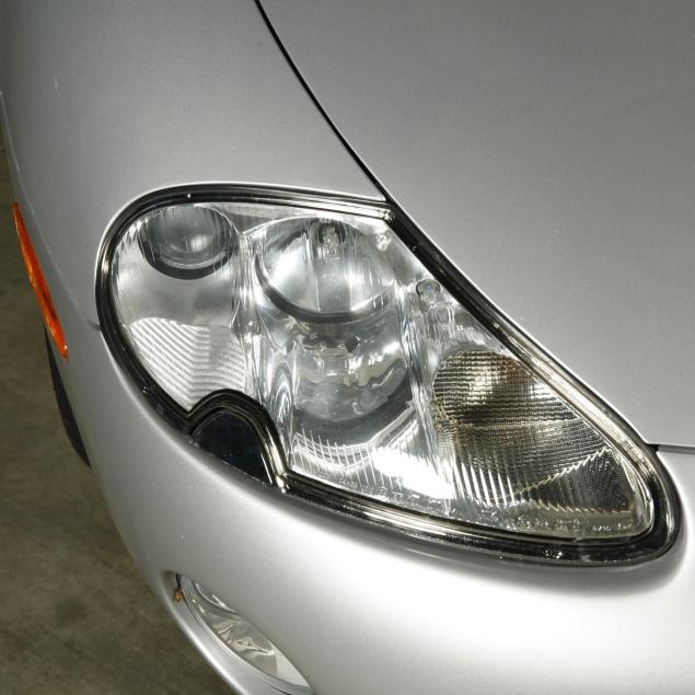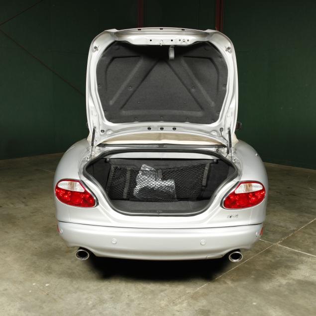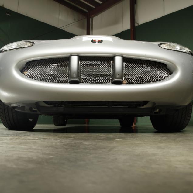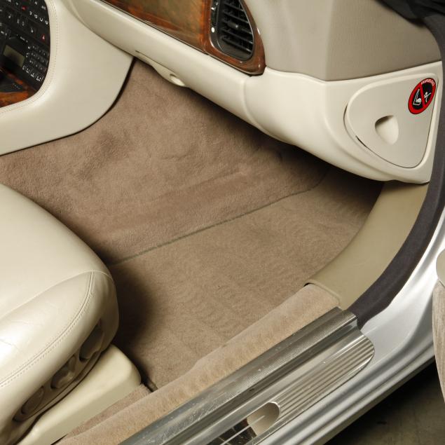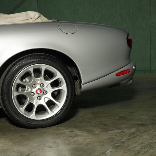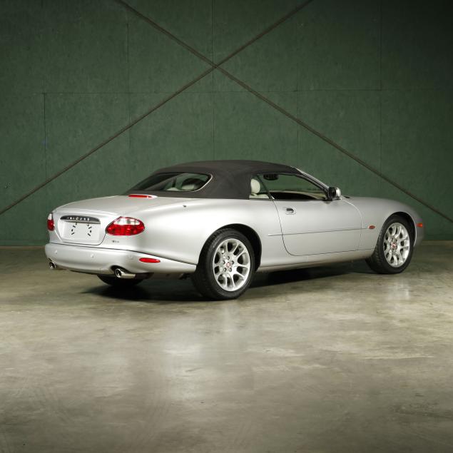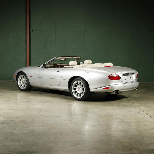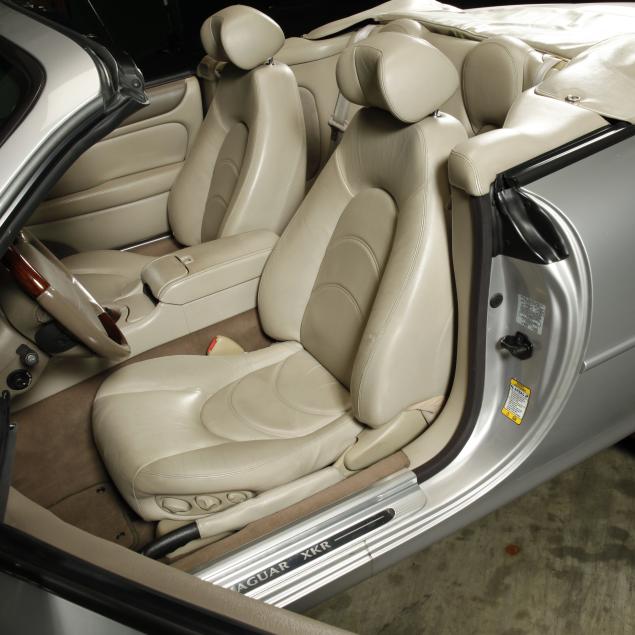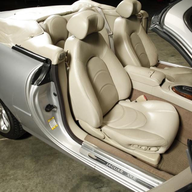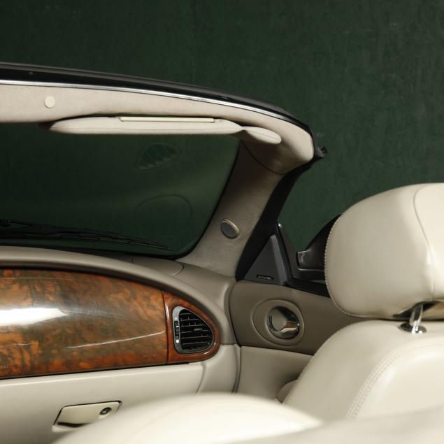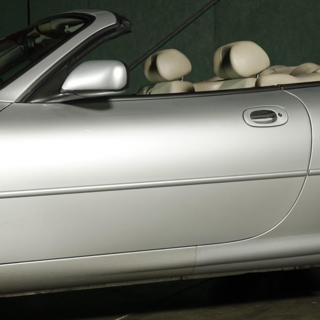 Exterior paint in Platinum Metallic (MDZ), and a premium leather interior in Oatmeal (AGD) with burl walnut trim and wool carpet. The power convertible top is in black fabric, and features a boot cover, as well as a quick tonneau for travel situations. Also with a premium car cover.