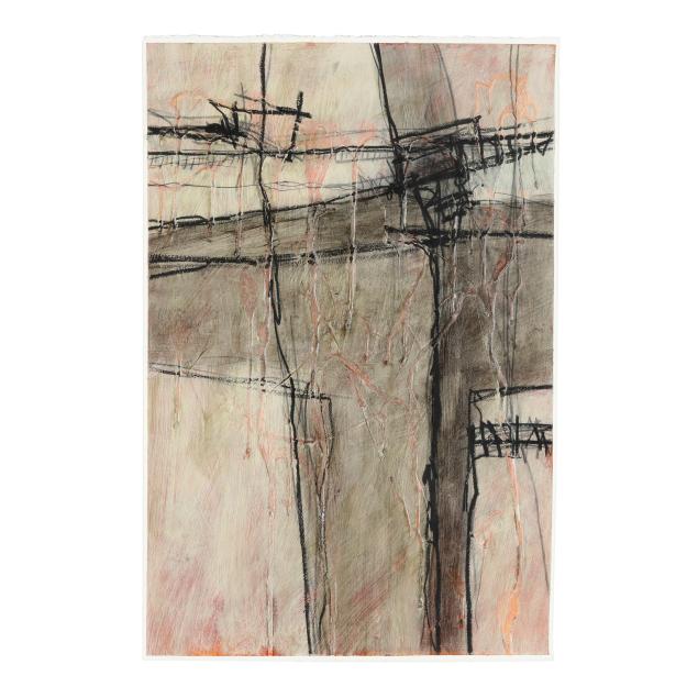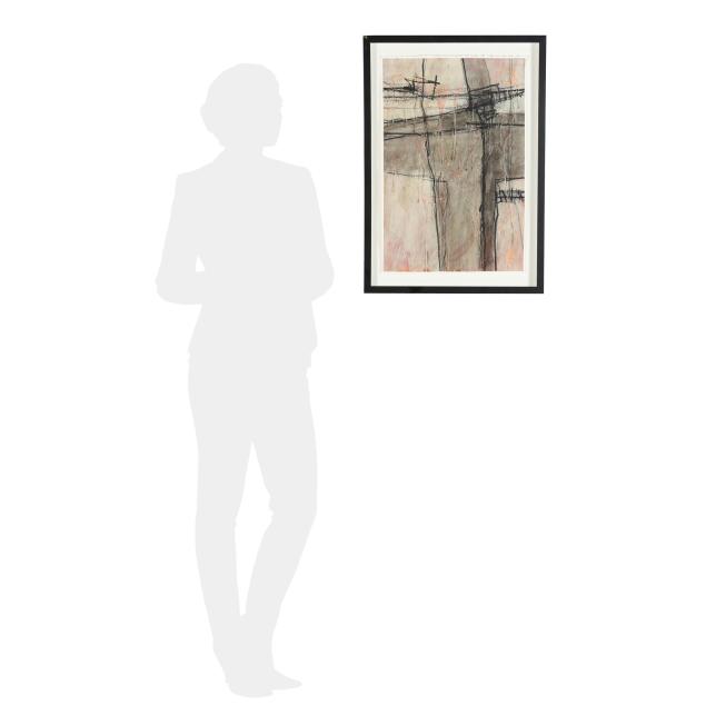 Oil and oil crayon on wove paper, not signed, float mounted below glass.