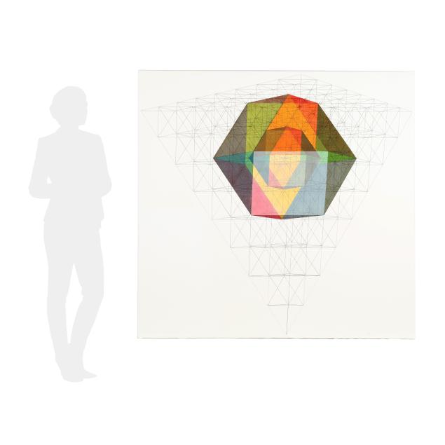 Hiigli's transfixing geometric paintings synthesize the teachings of Jean Piaget and Richard Buckminster Fuller. He endeavors "to create certain images of totality, images that are optical and energetic—not a 'signal' or transmitter, or point of reception of 'something else'—but objects, states of mind, visions that stand for what they are in and of themselves."