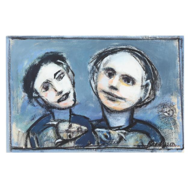 Robert Broderson (NC, 1920-1992), Two Figures with Creature