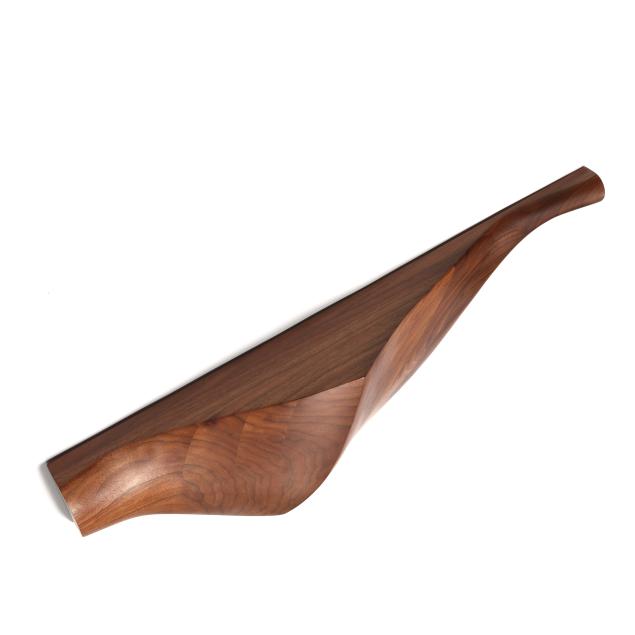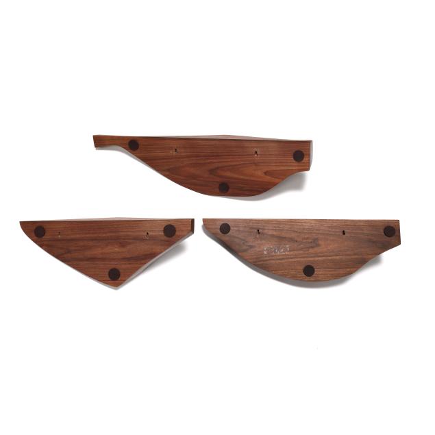 2024, assembled and carved walnut, in asymmetrical free-form designs, matte finish, signed and dated with integral mounts to the reverse. Included with the Lot is screws and anchors for wall mounting.