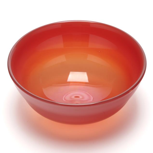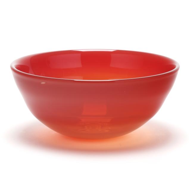 1988, opaque deep coral rim to semi-opaque body, inscribed "Sonja '88" to underside.