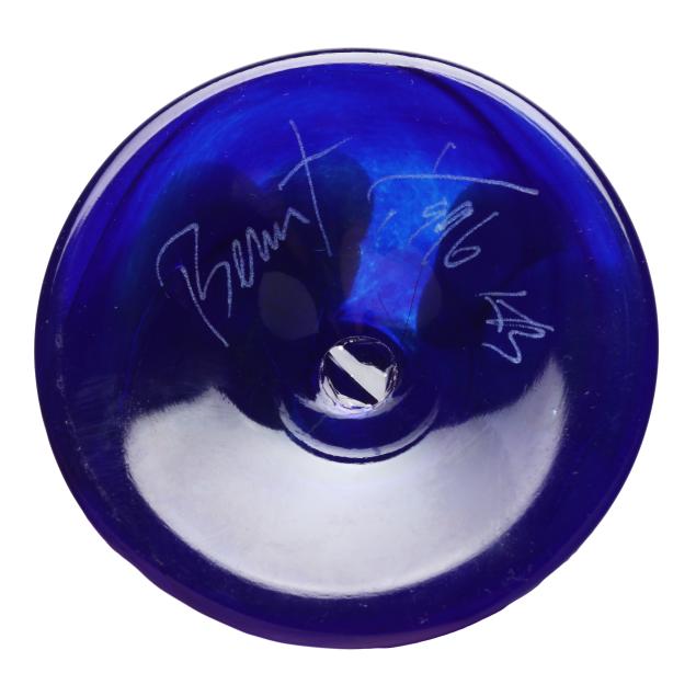 In the early years, Katie worked in hand built porcelain and Billy, very influenced by Scandinavian and colonial American glass design, started producing a variable line of goblets and sculptural pieces. In 1971, Billy, together with glass pioneers Mark Peiser and Fritz Dreisbach, took part in planning and hosting the first meeting of the Glass Arts Society. This organization has since grown into an international organization with over a thousand members.