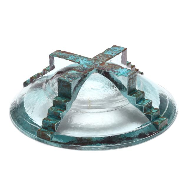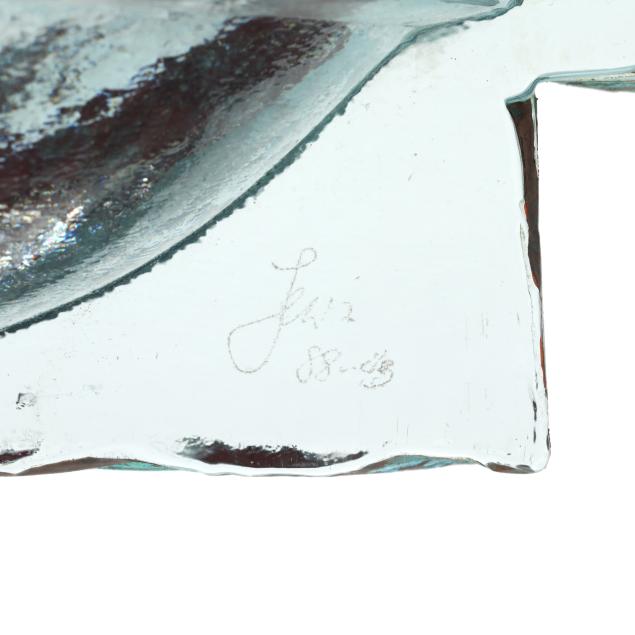 1988, cast clear glass and patinated copper, signed "Lewis / 88 --" to base.