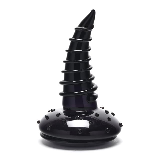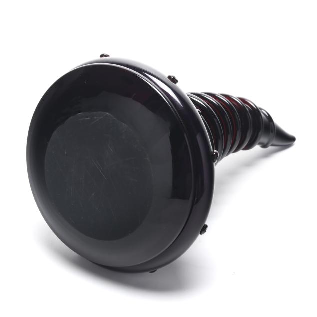 Blown black amethyst and ruby glass, appears unsigned.