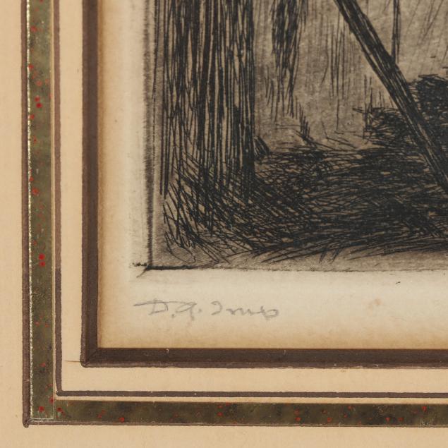 Etching on laid paper, 1931, pencil signed, titled, and inscribed "D.G. Imp.", from an edition of 50, likely numbered below the mat, matted and framed.