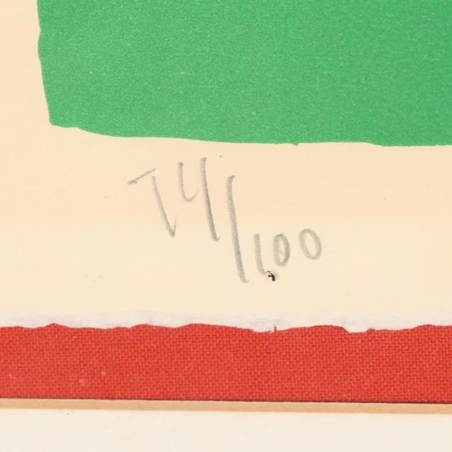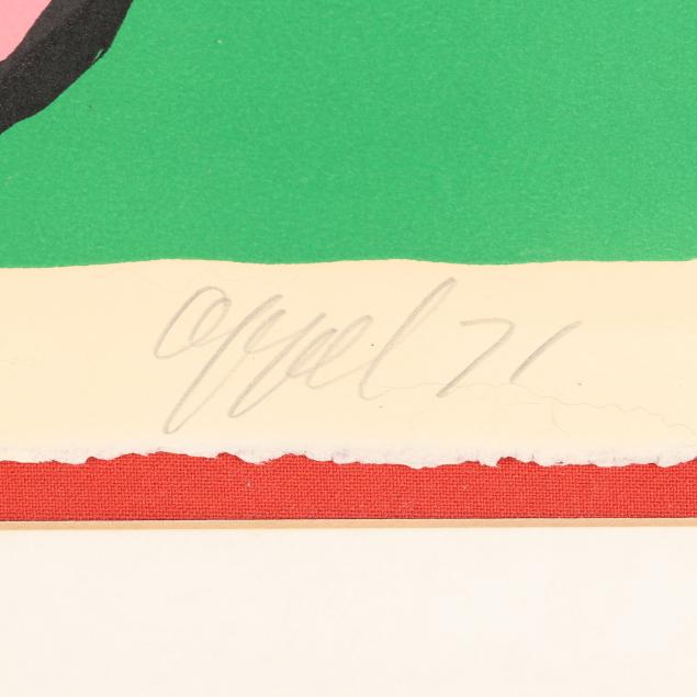 Lithograph in colors, 1971, pencil signed and numbered 74/100 to lower margin, with blindstamp, float mounted in a chrome frame below Plexiglass.
