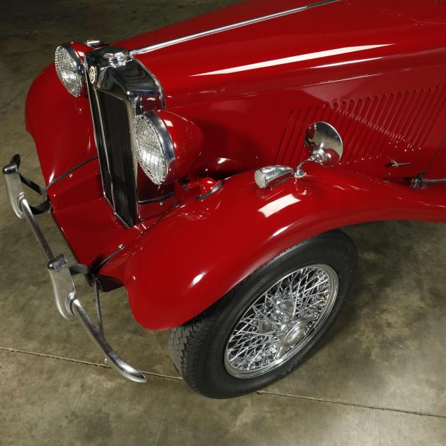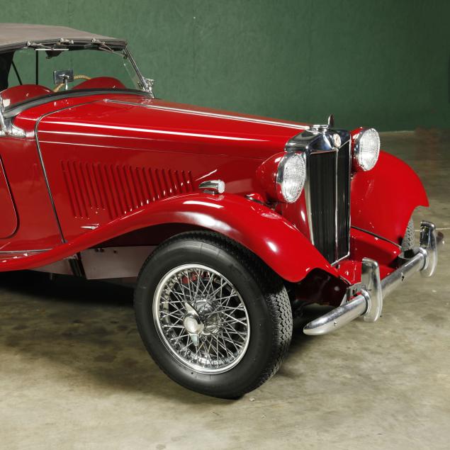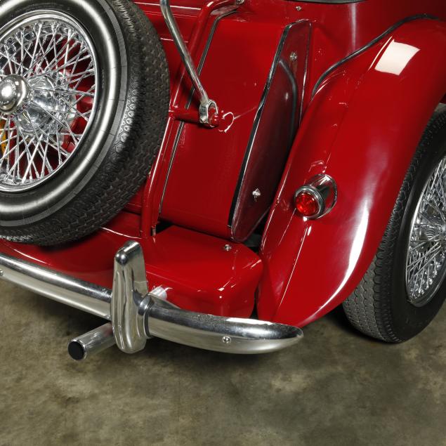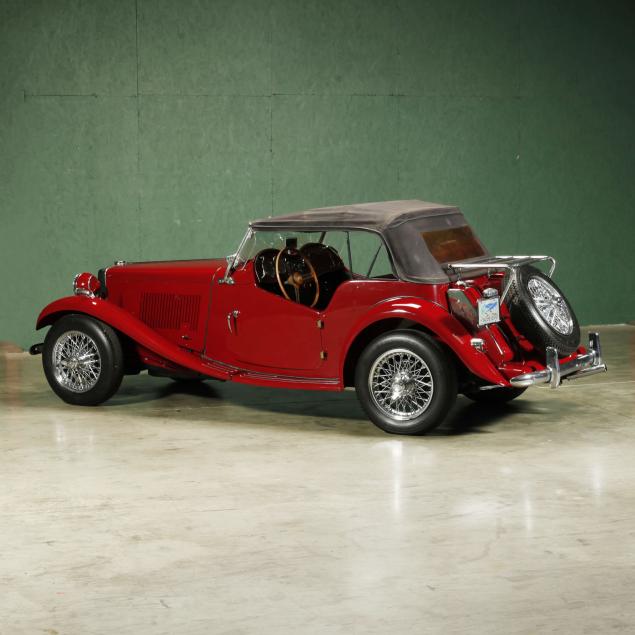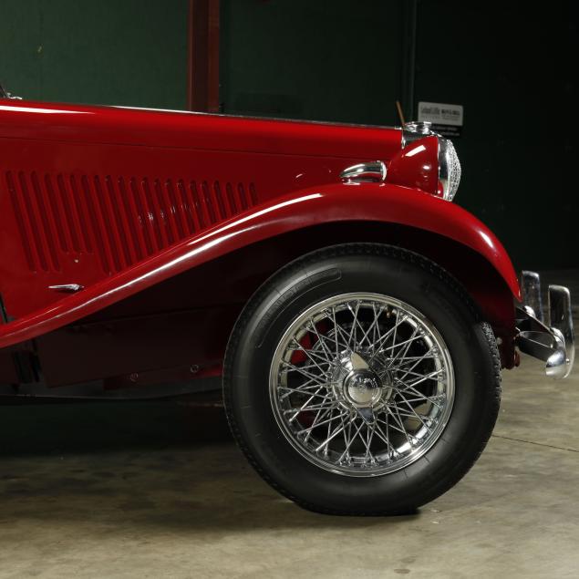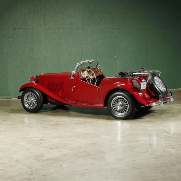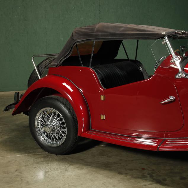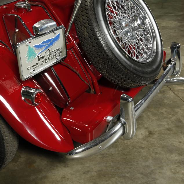 With an earlier 1250cc XPAG inline-four engine, 4-speed manual transmission, and independent front suspension. Chrome Dayton knock off wire wheels with dated Sunbelt radials are mounted, as well as the spare.