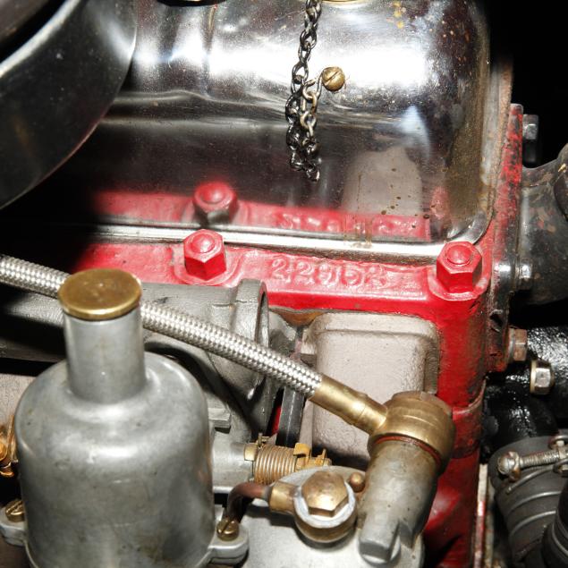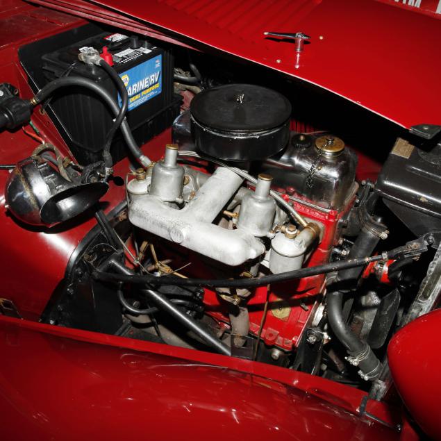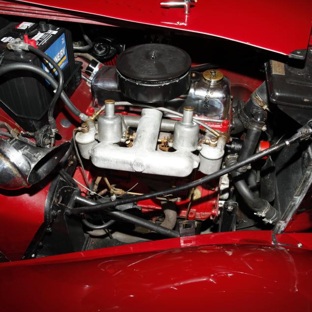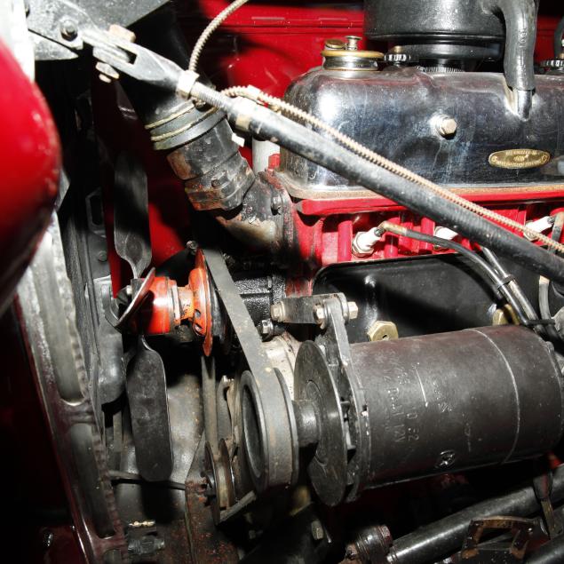 The car has had a complete restoration in the past. It was kept in climate controlled storage, and remains in excellent condition. The paint and chrome are excellent. Cylinders were soaked prior to cranking, and a visual inspection of fluids was conducted. The fuel system was cleaned, battery replaced, and water pump was replaced along with coolant. The car runs and drives, but should have further inspections and service.