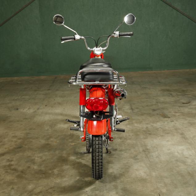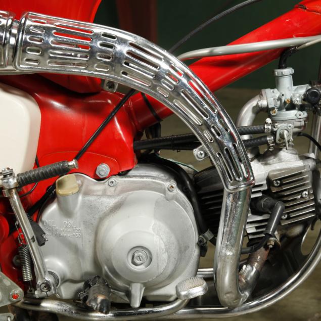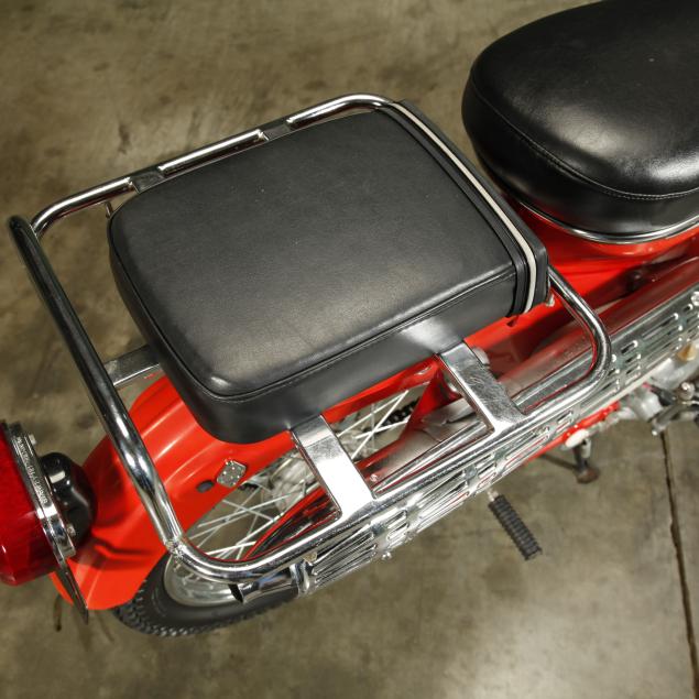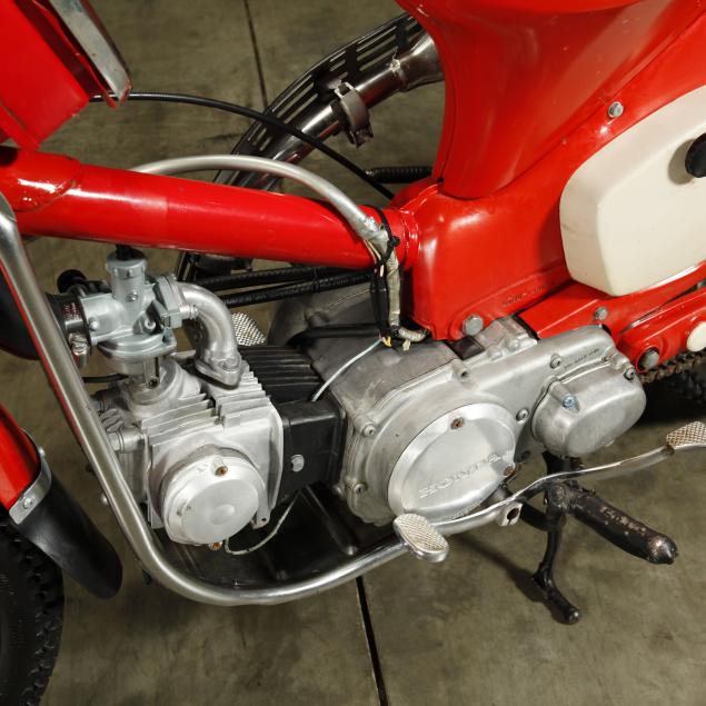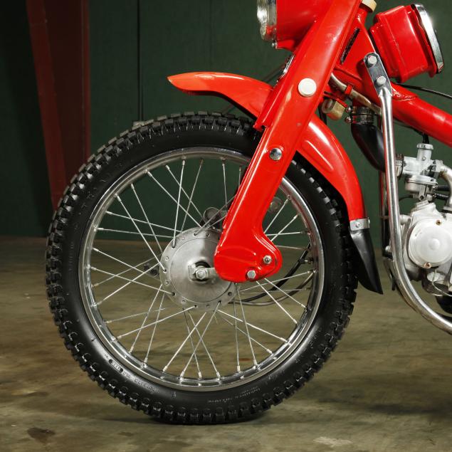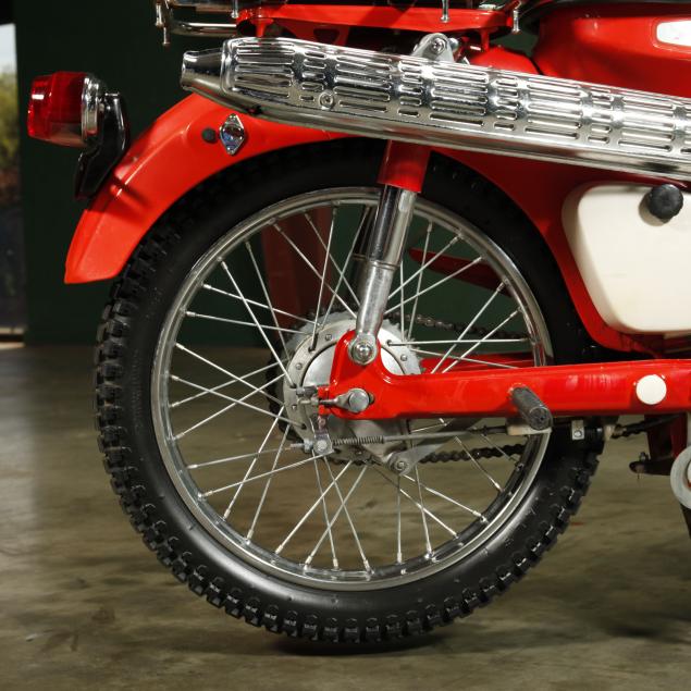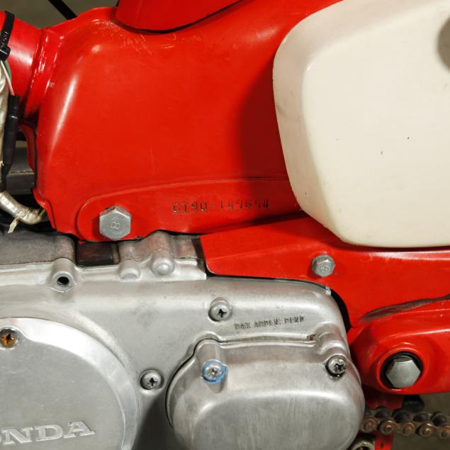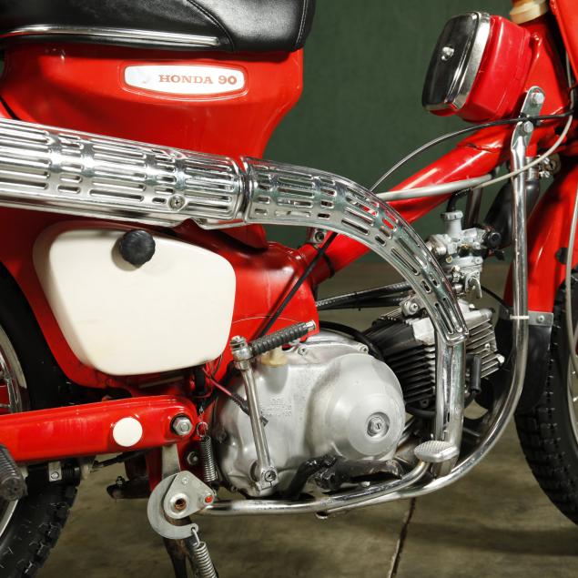 With an 89cc four stroke engine, with a four speed semi-automatic transmission with high/low range. Features the last year of bottom link front forks, following years featured telescopic style. Versatile for on/off road.