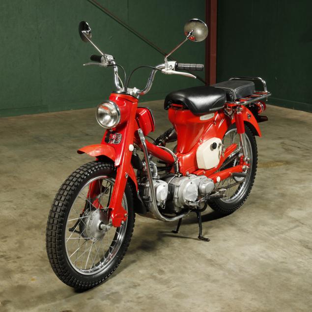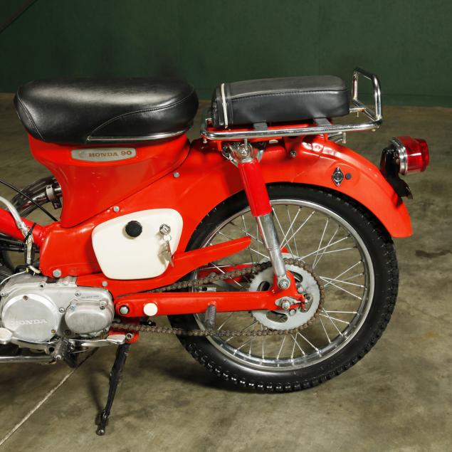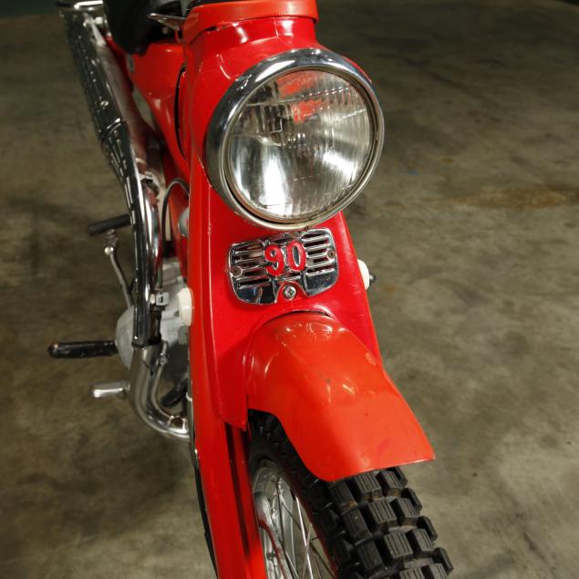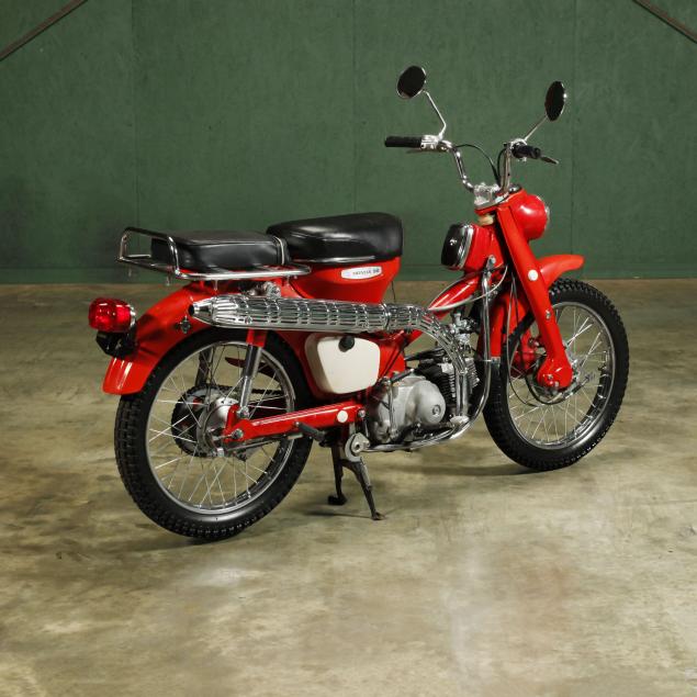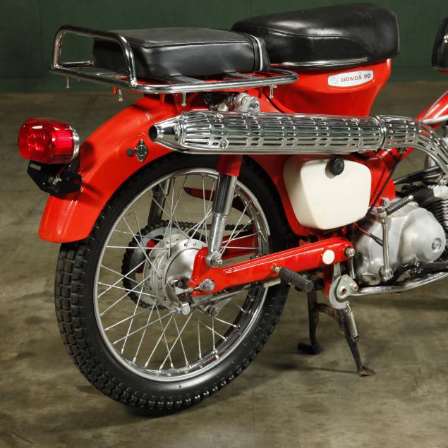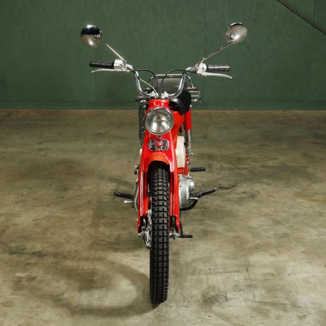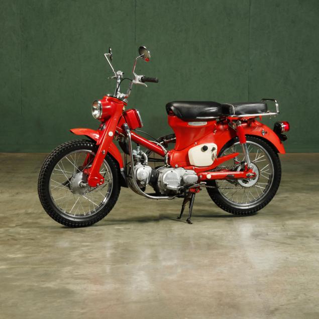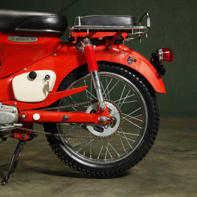 With an 89cc four stroke engine, with a four speed semi-automatic transmission with high/low range. Features the last year of bottom link front forks, following years featured telescopic style. Versatile for on/off road.