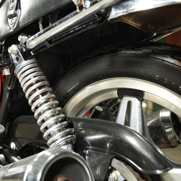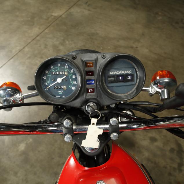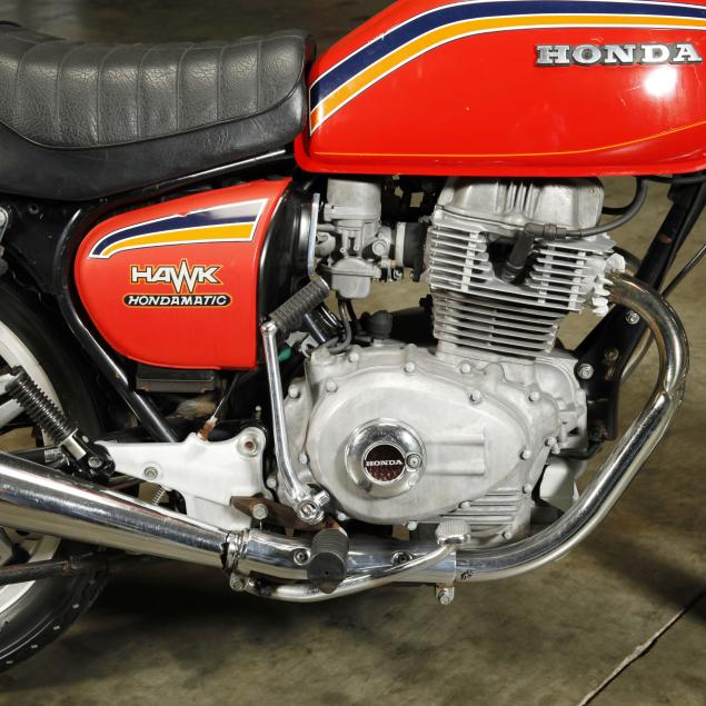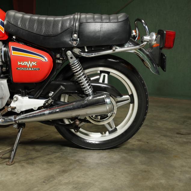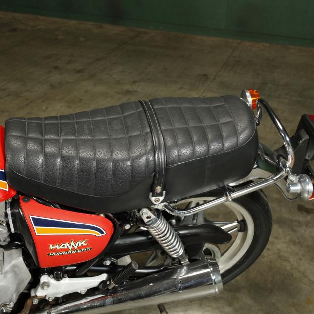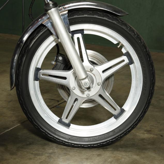 With a 395 cc air-cooled four-stroke parallel twin engine, and a two-speed semi-automatic transmission. It has a torque converter, and two rider selected forward gears (high and low). There is a gear position indicator in lieu of a tachometer in the instrument binnacle. A parking brake replaces the clutch lever.