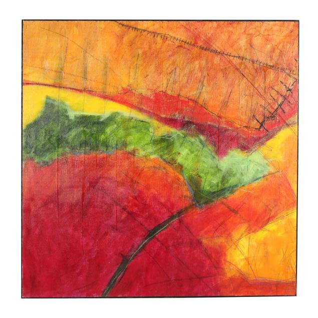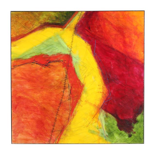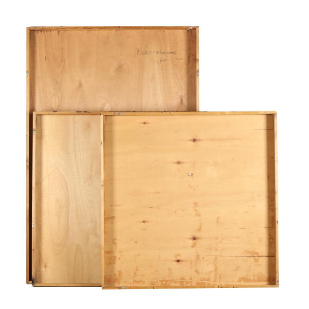 Acrylic and mixed media on panel, 2003, the largest panel signed, titled, and dated to the verso, framed.
