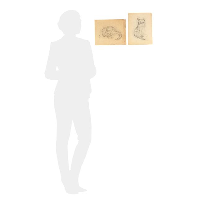 Each a collotype on Japanese vellum, 1930, signed and dated in the plate, from the edition of 500, published by Covidi Friede, New York, includes a vertical seated cat (sheet size 12 x 9 1/4 in.) and a reclined cat (sheet size 9 5/8 x 11 7/8 in.), with margins, unframed.