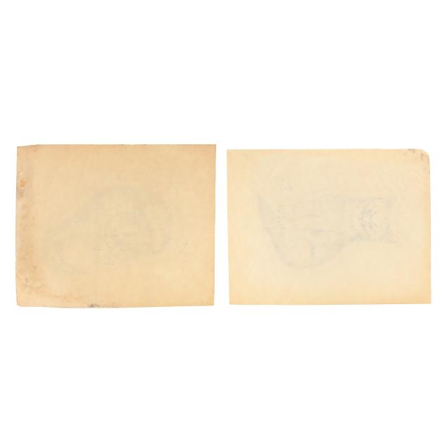 Toning; one with moisture staining in right and lower margins; other with moisture stain upper right corner; some creasing and minor margins tears.