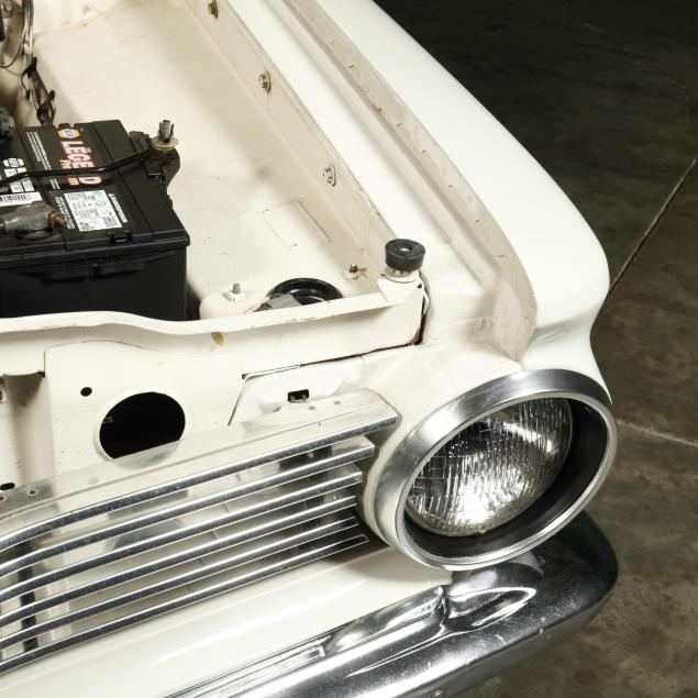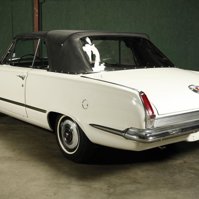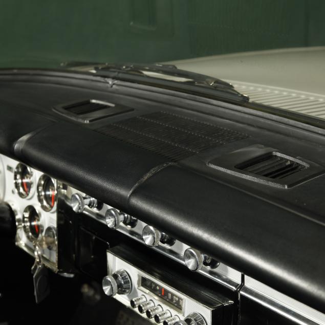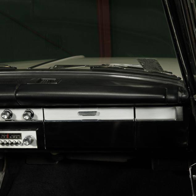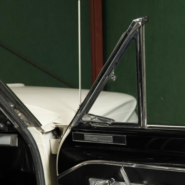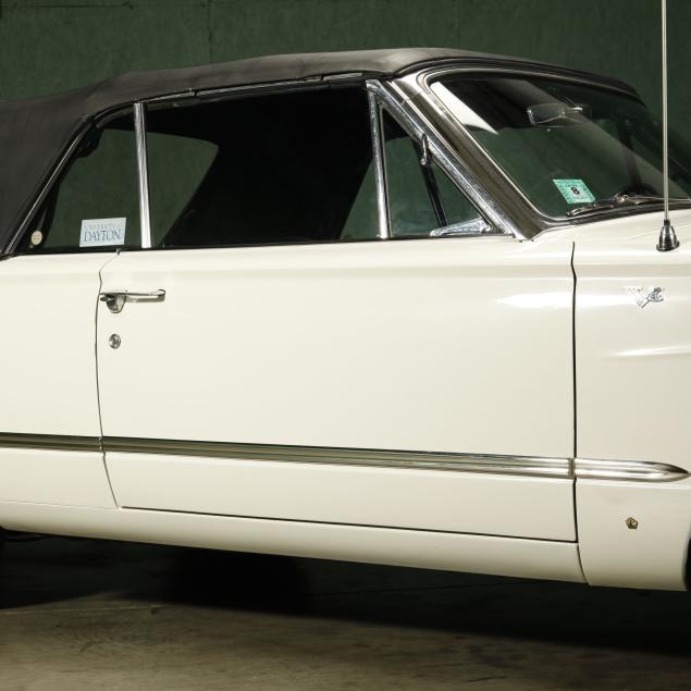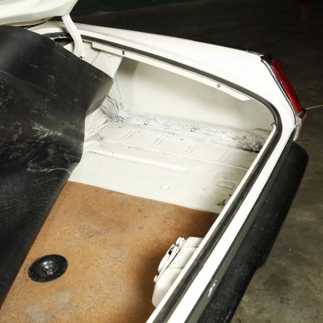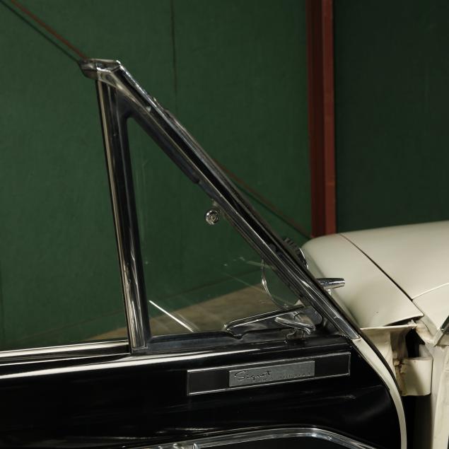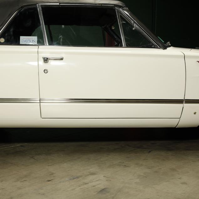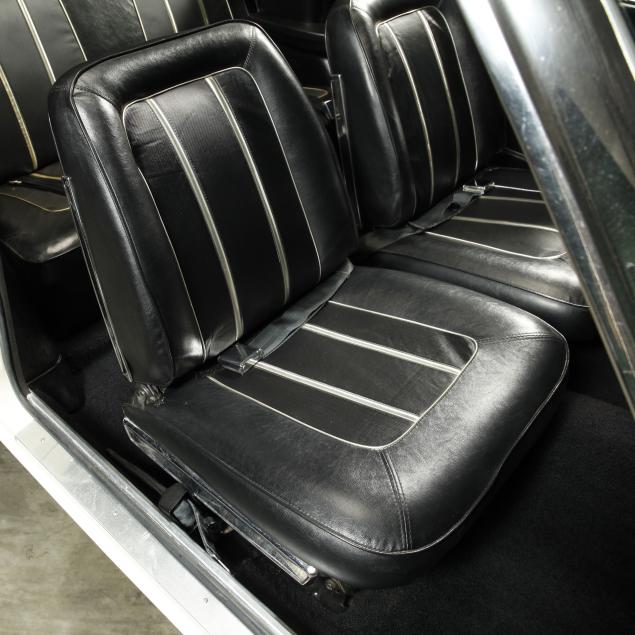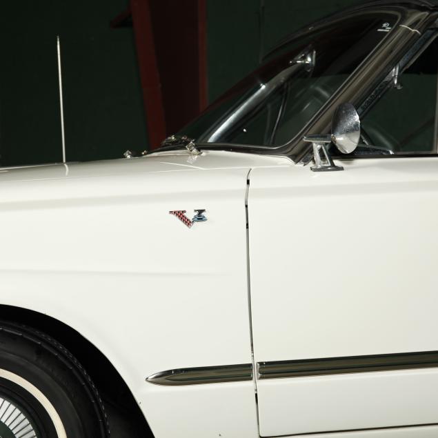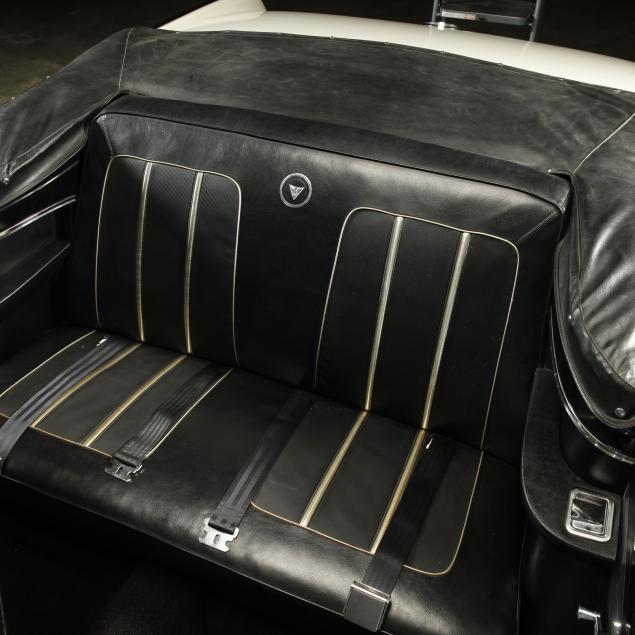 The premium Signet 200 package offered a more luxurious interior, and a powered convertible top model. This one has a repaint in the original white, with the premium black custom tailored vinyl interior. The interior is mostly original, with a refurbishment during the repaint. It appears the doors and dash repainted, with front seat covers, and new carpet. The original AM radio operates.