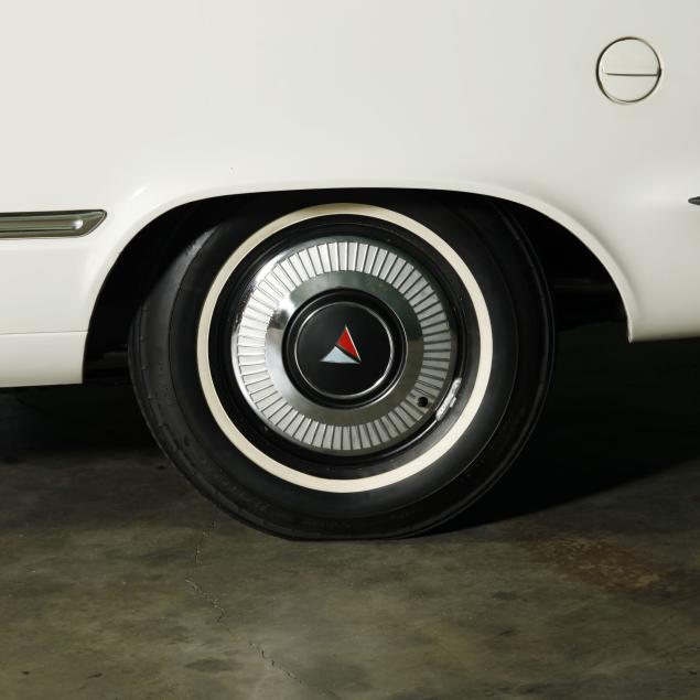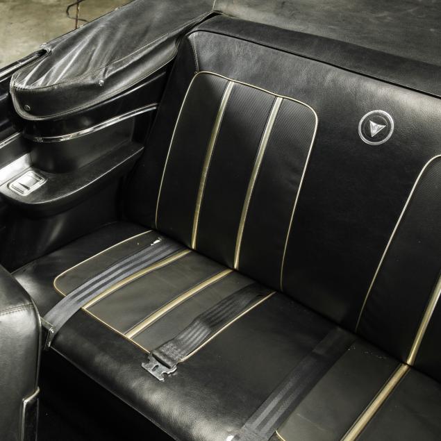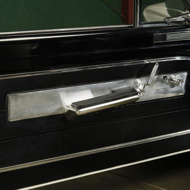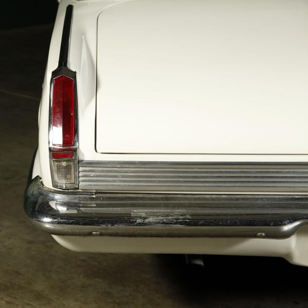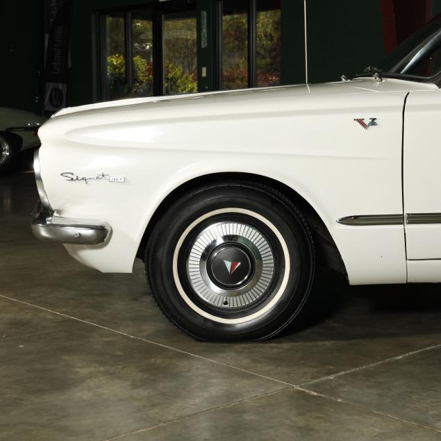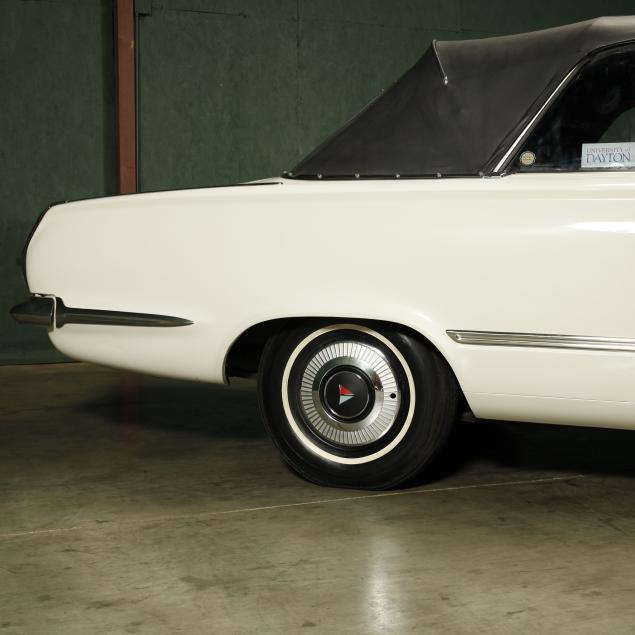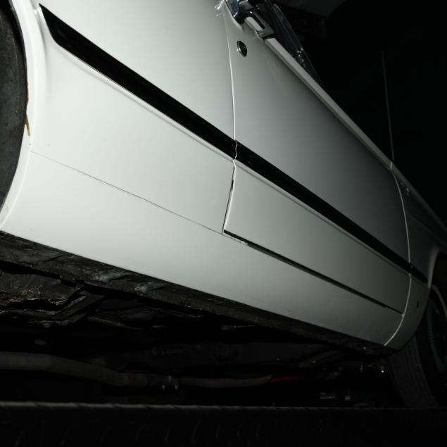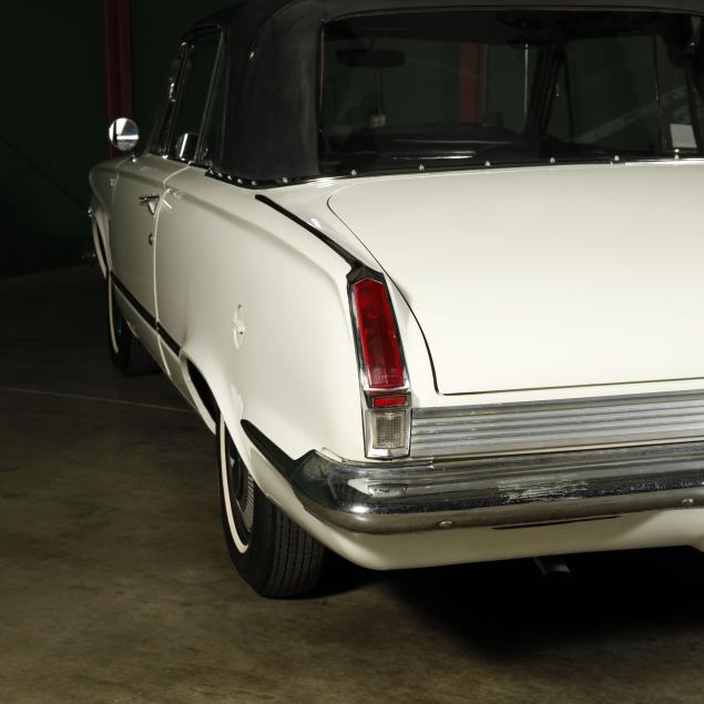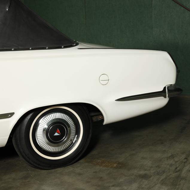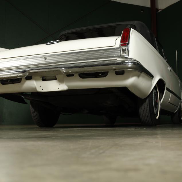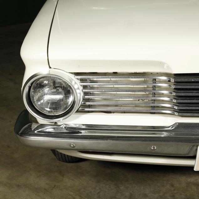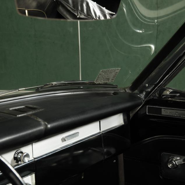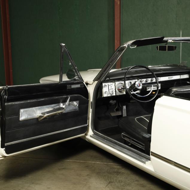 The premium Signet 200 package offered a more luxurious interior, and a powered convertible top model. This one has a repaint in the original white, with the premium black custom tailored vinyl interior. The interior is mostly original, with a refurbishment during the repaint. It appears the doors and dash repainted, with front seat covers, and new carpet. The original AM radio operates.