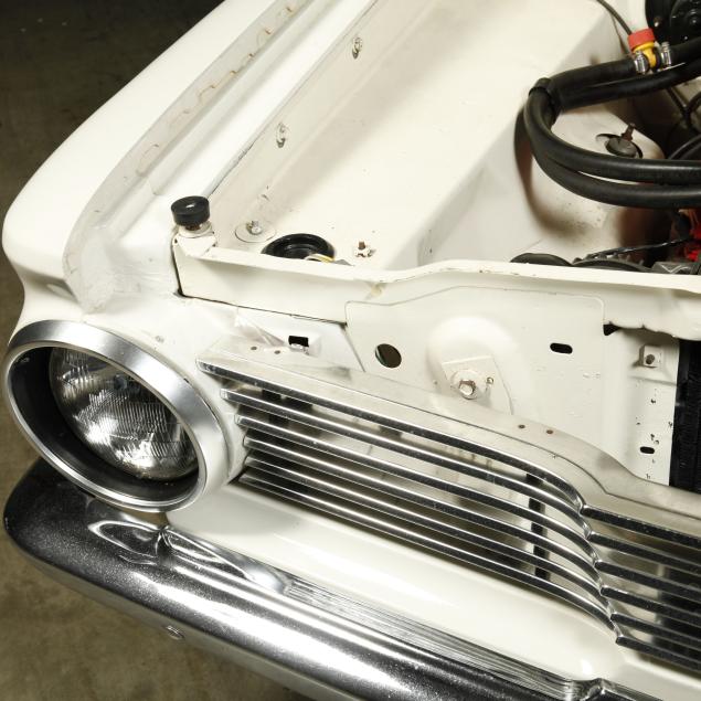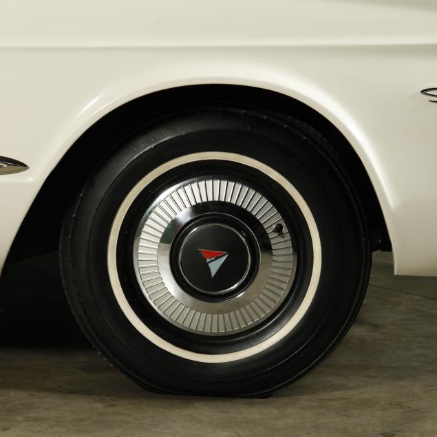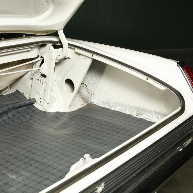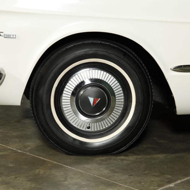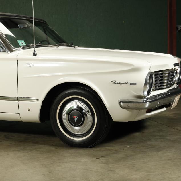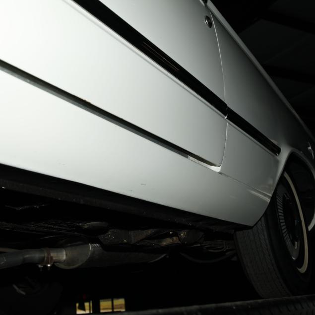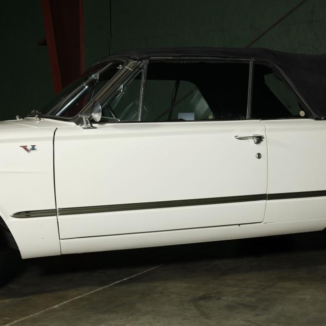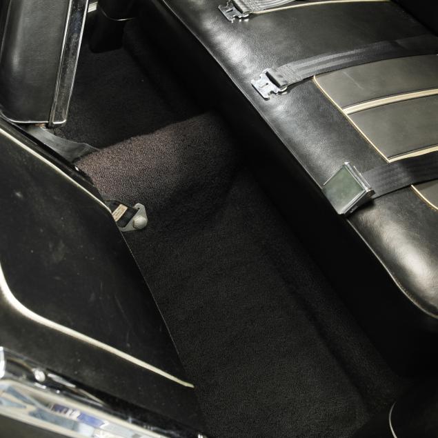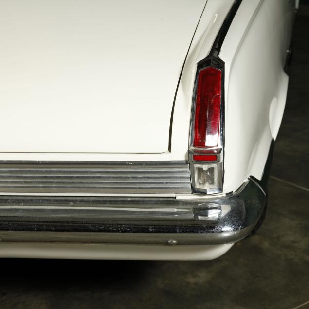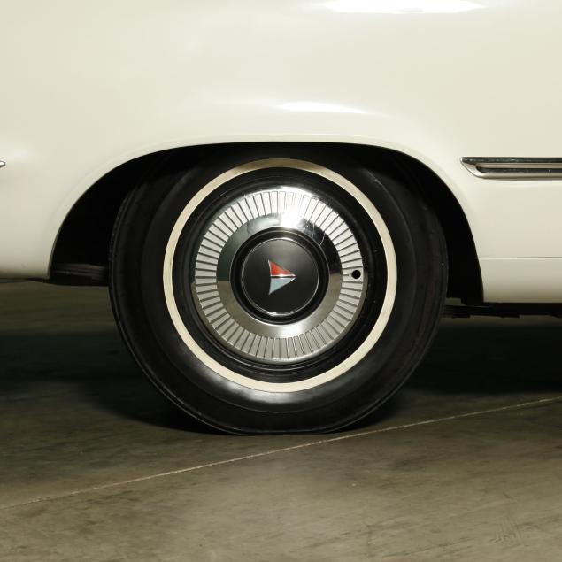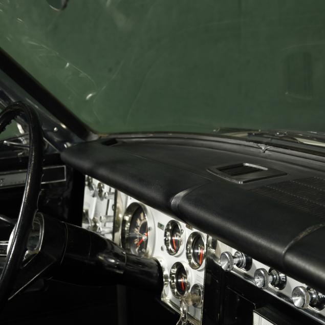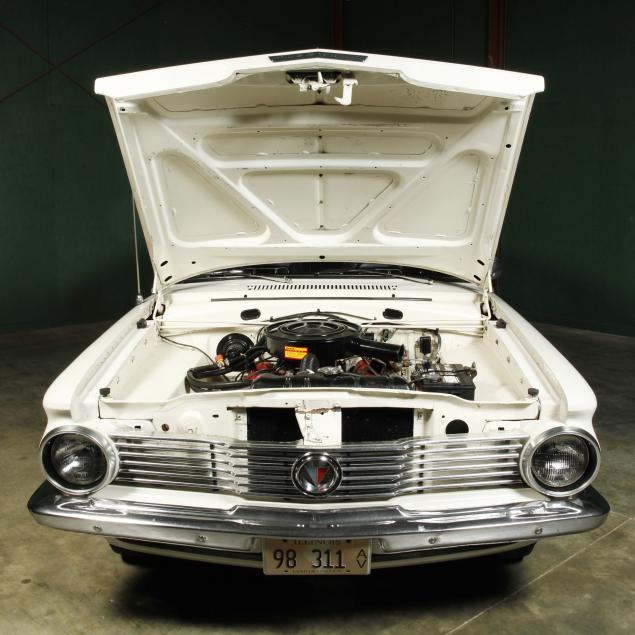 The premium Signet 200 package offered a more luxurious interior, and a powered convertible top model. This one has a repaint in the original white, with the premium black custom tailored vinyl interior. The interior is mostly original, with a refurbishment during the repaint. It appears the doors and dash repainted, with front seat covers, and new carpet. The original AM radio operates.