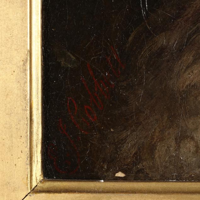 The painting has been lined, light age cracking, flake to lower left corner, small area of retouching to loss.