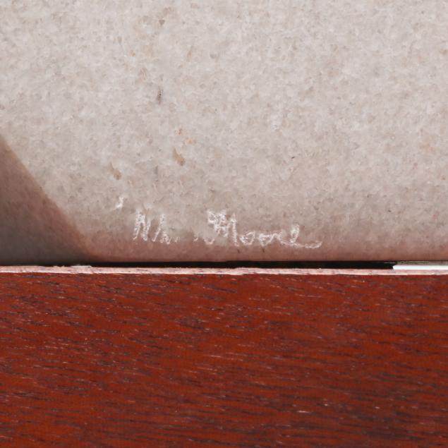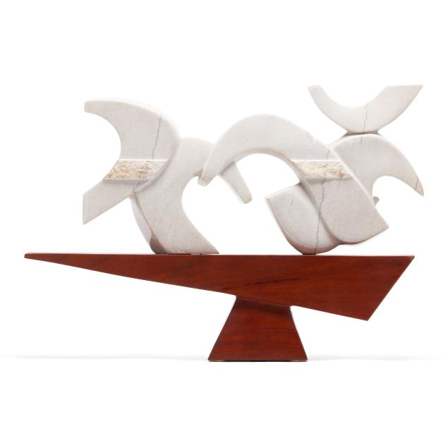Private Collection, Cary, North Carolina William Moore may describe his sculptural work in marble, ceramic, stone, wood, and bronze as creations depicting elements ranging from the sublime to the hilarious, but his level of craft exceeds expectations just as his choice of material quality rebukes whimsical commentary. His blend of an obviously crisp, intimate familiarity with human form into impossible contortions of angular, stolid materials, mimics the natural forces Earth spent creating the elements. Shown nationally and internationally, William Moore’s work graces private and public collections with classic elegance and enduring permanence. Works placed in the Triangle Region of North Carolina include Duke University Chapel, Progress Energy corporate headquarters, SAS Corporation, Glaxco Wellcome and the City Cary , NC and numerous Churches and Synagogues.