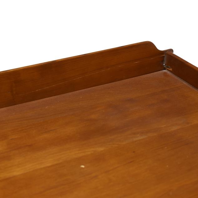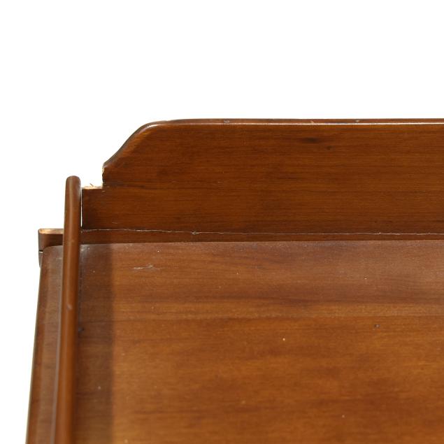 Top reset; backsplash with rear corner losses, later nails and loose back board; later pulls; later legs.