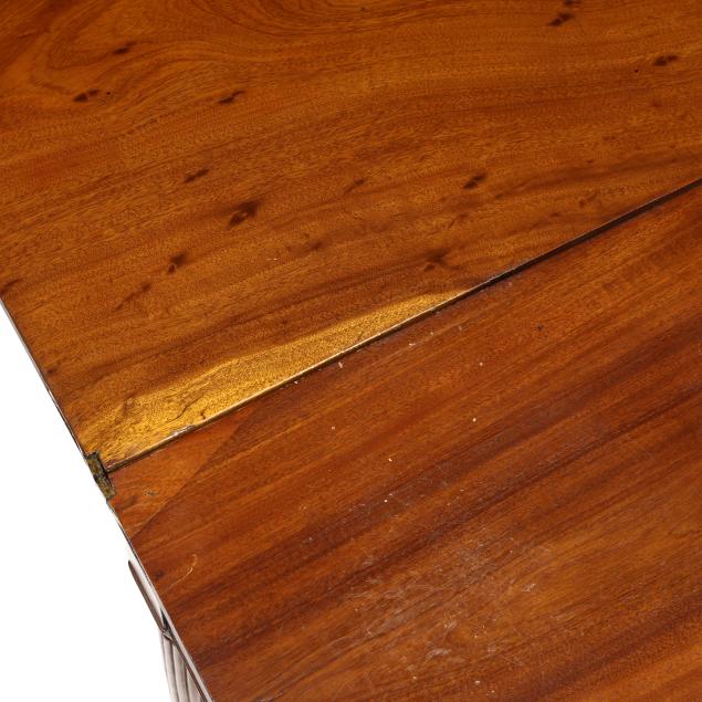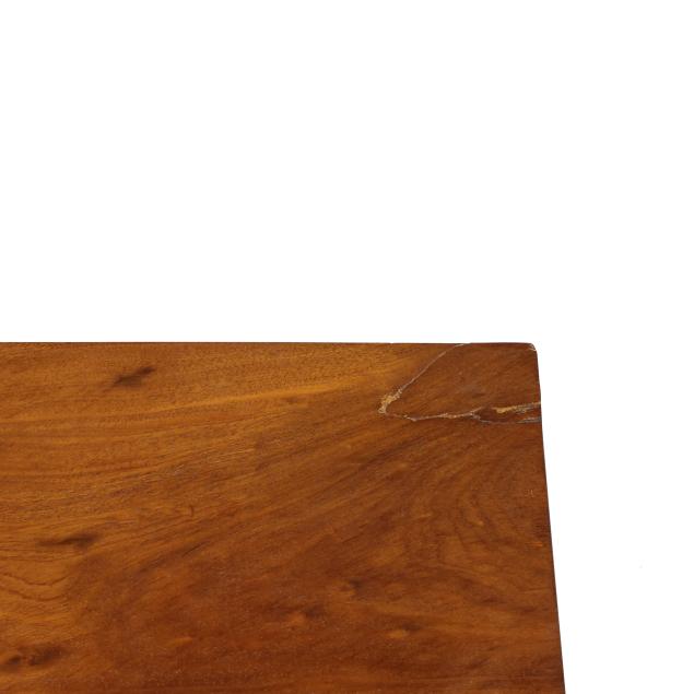 Top with break and repair to rear right corner; water stain and light surface scratches; front legs with repair and reset.