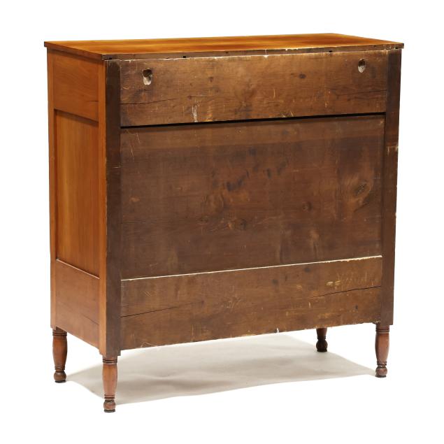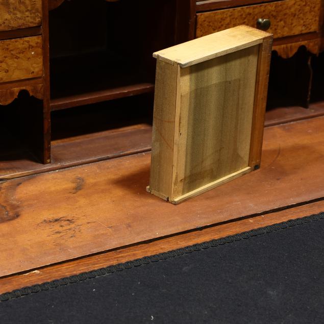Top reset; later writing surface; missing some interior valances; missing interior prospect door; some shrinkage cracks to case sides; old pulls in the original holes.