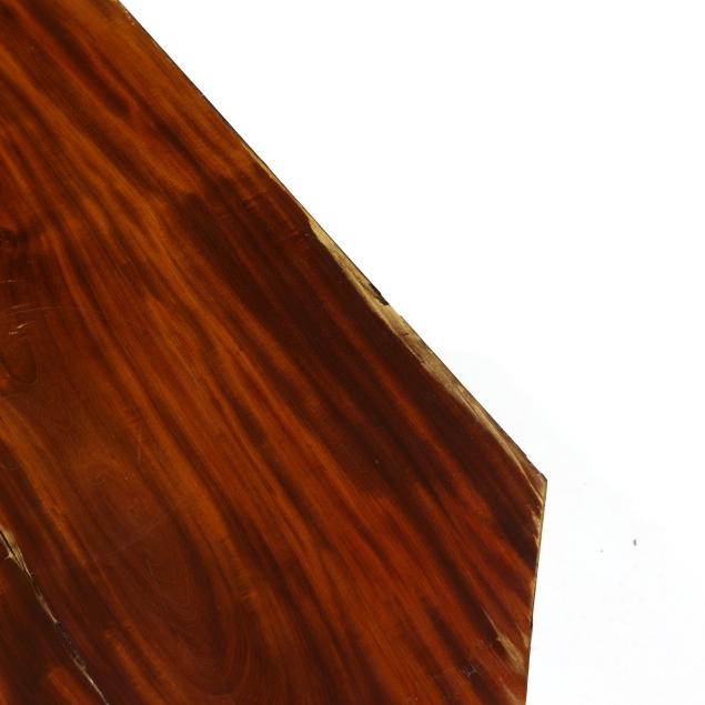 Fair condition; top with shrinkage cracks, scratches, staining and wear; veneer chips throughout; one column support with later screws and brace; other repairs; legs reset; enhanced ebonized and gilt surfaces.