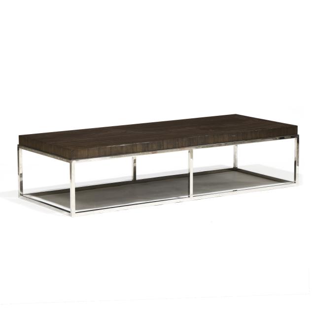 Restoration Hardware, Exotic Wood and Chrome Coffee Table