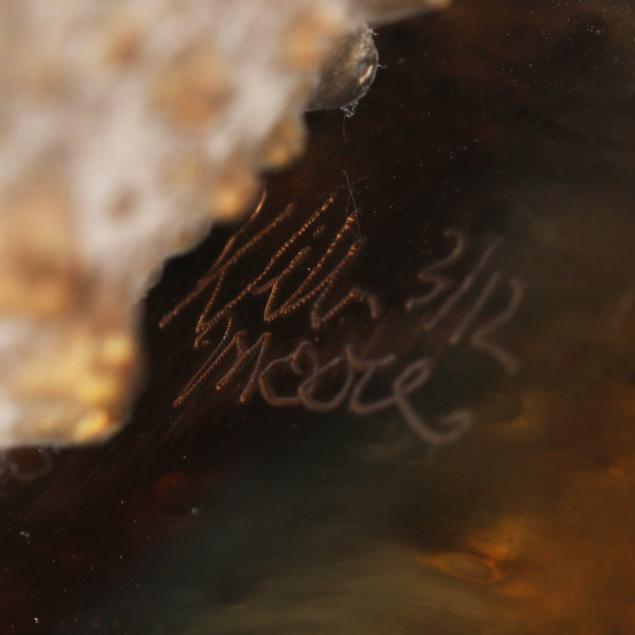 Private Collection, Cary, North Carolina William Moore may describe his sculptural work in marble, ceramic, stone, wood, and bronze as creations depicting elements ranging from the sublime to the hilarious, but his level of craft exceeds expectations just as his choice of material quality rebukes whimsical commentary. His blend of an obviously crisp, intimate familiarity with human form into impossible contortions of angular, stolid materials, mimics the natural forces Earth spent creating the elements. Shown nationally and internationally, William Moore’s work graces private and public collections with classic elegance and enduring permanence. Works placed in the Triangle Region of North Carolina include Duke University Chapel, Progress Energy corporate headquarters, SAS Corporation, Glaxco Wellcome and the City Cary , NC and numerous Churches and Synagogues.