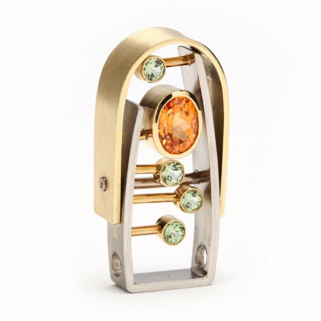 Lot 110 · 18KT Gold, Citrine, and Sapphire Clip Brooch, French