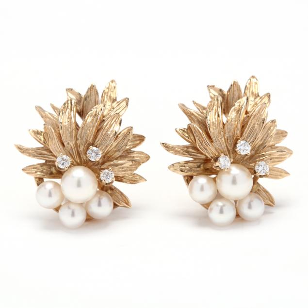Lot 88 · 18KT Gold, MabĂ© Pearl, and Diamond Earrings, Spark